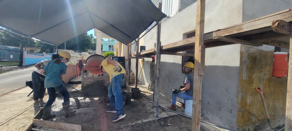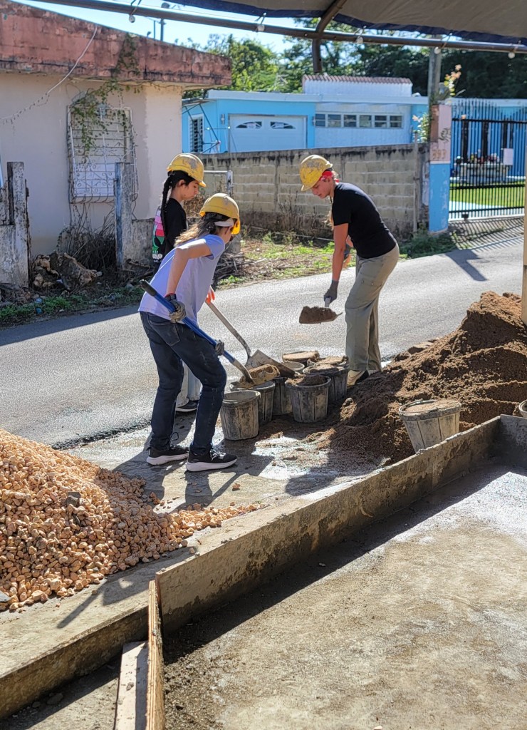 Today we went to the worksite to begin the construction project. We poured buckets of sand, shoveled concrete, and passed buckets full of wet concrete. It was very challenging in the smoldering heat, but we made sure to stay positive and hydrated. After we finished with construction for the day, we went to a member of the community´s home. There, we learned about Angel, the foreman, and his experience with Hurricane Maria. Angel and many others lost everything in the hurricane, and Angel has helped rebuild over 60 houses since. Afterward, we went to the beach to swim and relax.