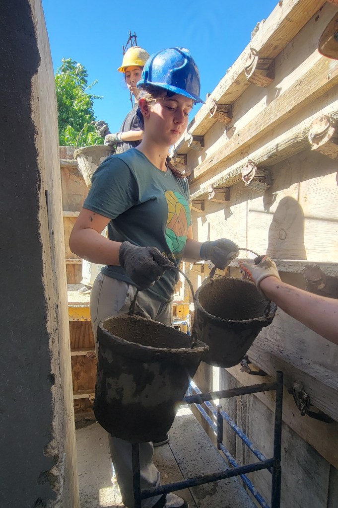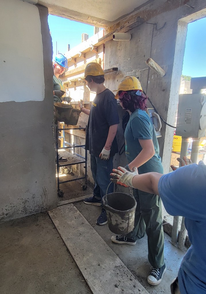 Today, when we woke up, we were greeted by a delicious waffle breakfast. By the end of breakfast, we were ready to rumble and headed to the construction site. Angel told us that today we were going to be filling in the walls with cement. The jobs for today were: shoveling, passing buckets, and filling in the wall. We worked tirelessly and filled in the first wall in only 45 minutes! During our breaks, we were surprised to receive different snacks like fruit, CapriSuns, and Gatorade. After each break, we switched around our jobs and learned more skills for rebuilding houses.