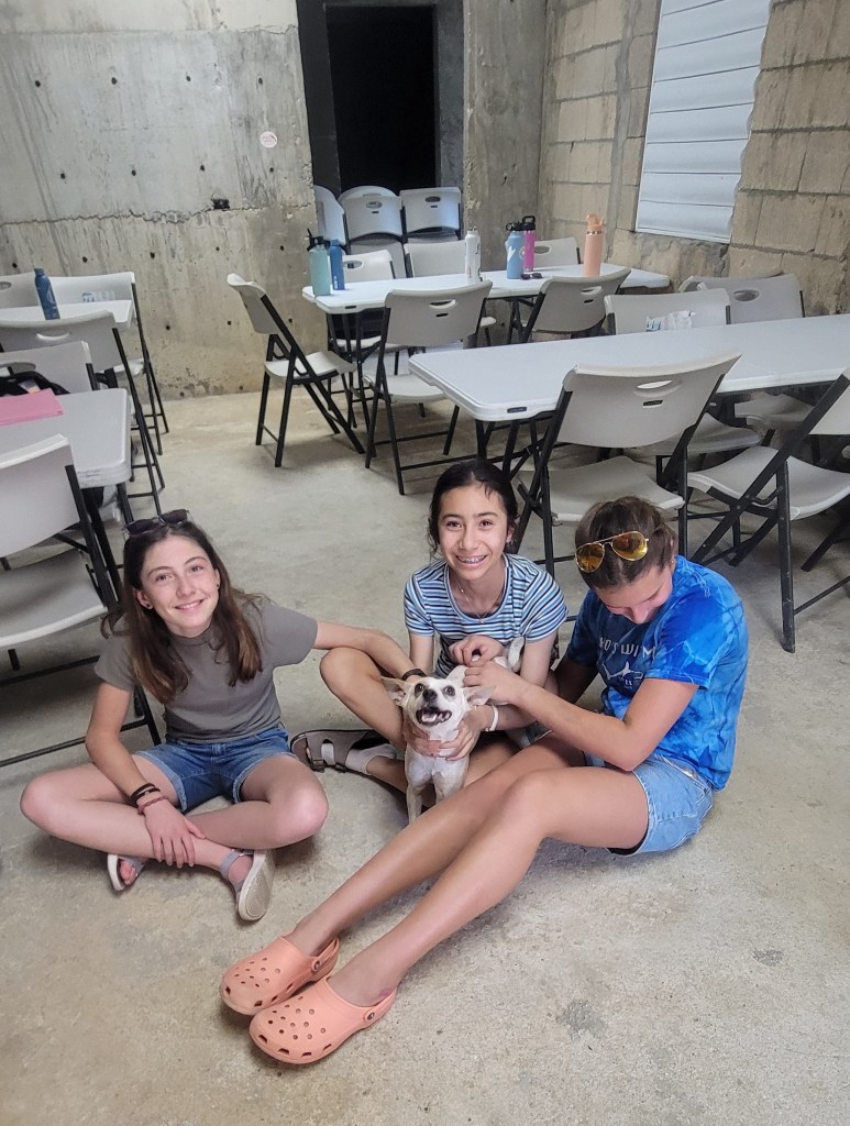 When we were finished with construction, we were welcomed back to Maria’s house with a very delicious lunch, and a very friendly dog that we called Lil Brunc. Our delicious lunch today was rice, beans, chicken nuggets, and salad. After our lunch, we headed to a local bakery where Ms. O bought us giant donuts the size of Lil Brunc! Then, we went to a nearby supermarket where we bought a bunch of delicious and exclusive Puerto Rican snacks. After that, we went back to the Big Yellow House to get ready for the beach. The beach was super fun, and when we got back, we all ate a really delicious meal. Then we enjoyed the rest of our day with group activities and free time.