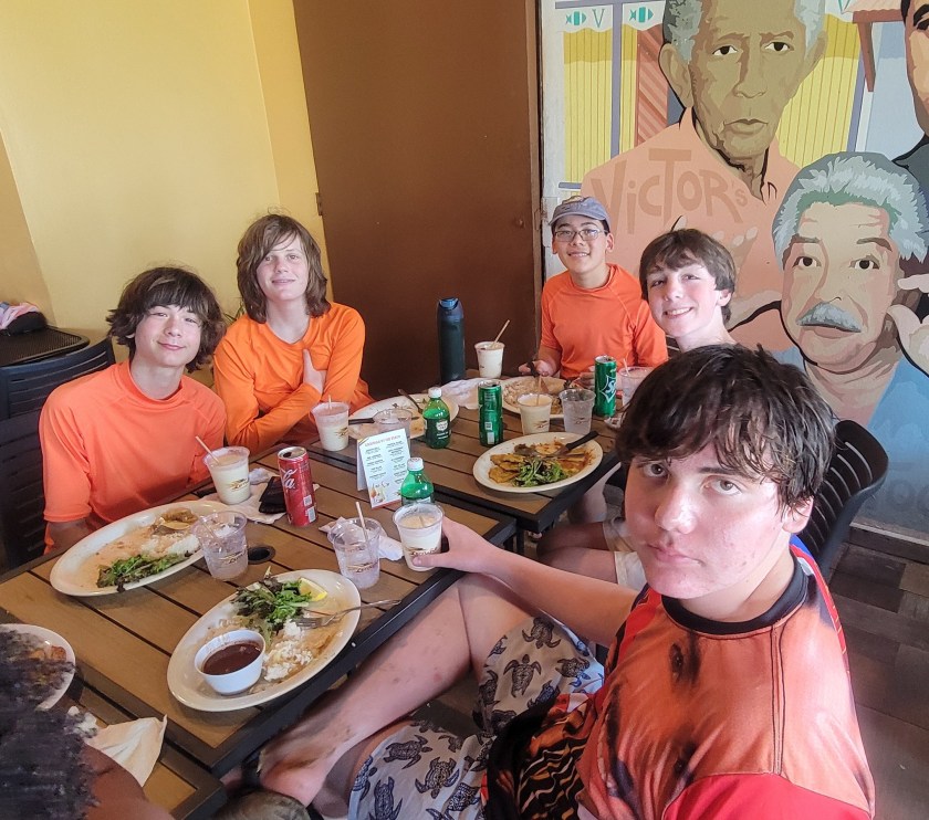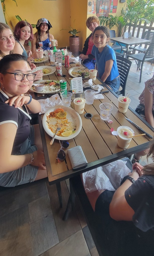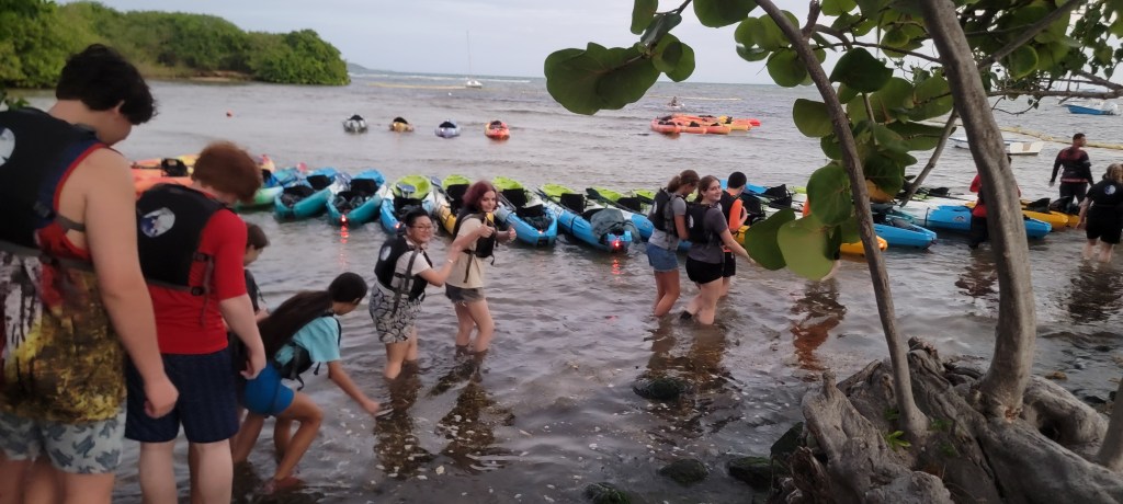 After the delicious lunch, we had an hour to visit and buy from the kiosks that were on the street. Once we were finished shopping, we made the trip to Casa Coral, which is where we get to stay for one short night! There, we settled in and checked out the beach. We had an early dinner of pizza and got in the van one last time to head to Biobay kayak tours. We paddled a mile and a half each way through tangled mangrove roots with our partners to see the bioluminescence of the microscopic things living in the bay. Back at Casa Coral, we shared about what we had learned on the trip and what we will take back home. We will miss our time here in Puerto Rico!