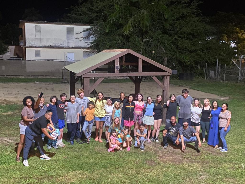 The group prepared thank you cards written to the community we worked with over the week. Once everything was ready, we spent time with Miss O and Miss Kim to reflect on our experiences with the community so far through journaling. For our final dinner at the Big Yellow House, we invited the community to share it with us. We had a delicious dinner of chicken breast, pork chops, yellow rice, and potatoes. After everyone had finished their food, our class played games with the other kids in the community. To close up our dinner, we had a final meeting about our overall thoughts on our three days at the work site. Before we said our final goodbyes, the community gave us each a bracelet as a thank you and as a reminder of our time here in Puerto Rico.