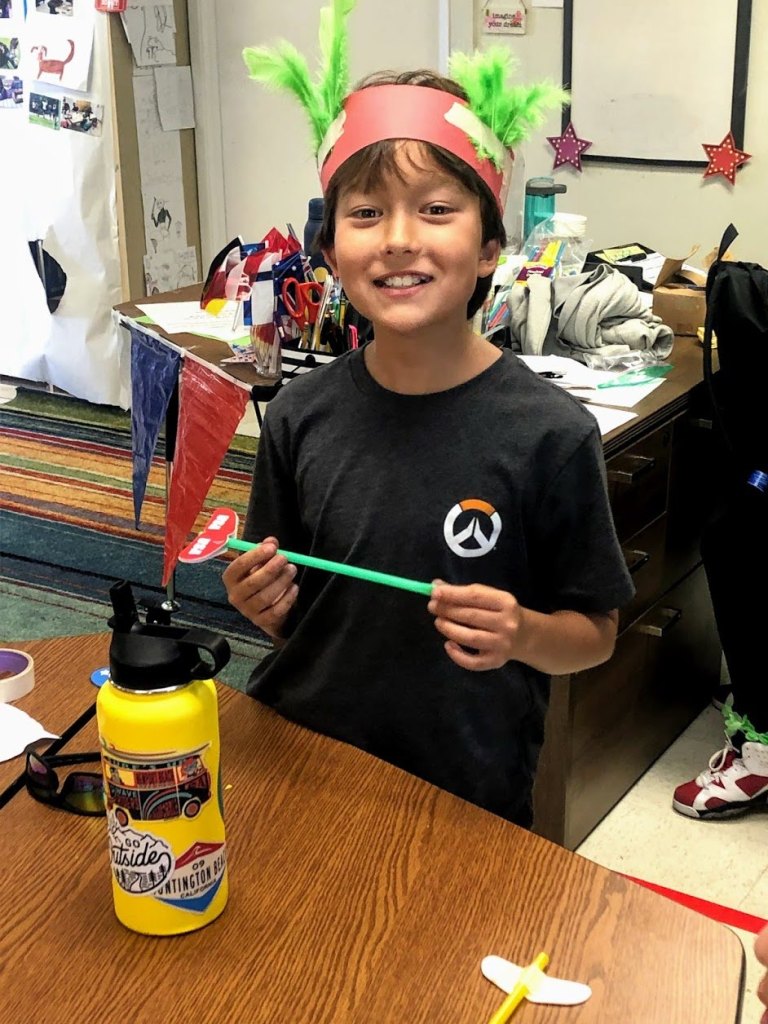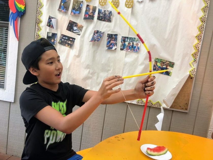 The Explorers started the first week of session two with Fourth of July inspired art projects. Students decorated colorful pinwheels and constructed cardboard airplanes that they tested outside. Some campers took the materials from the art project to build their own bow and arrows and colorful hats. Throughout the week, these campers improved on their projects by further testing and developing their crafts.