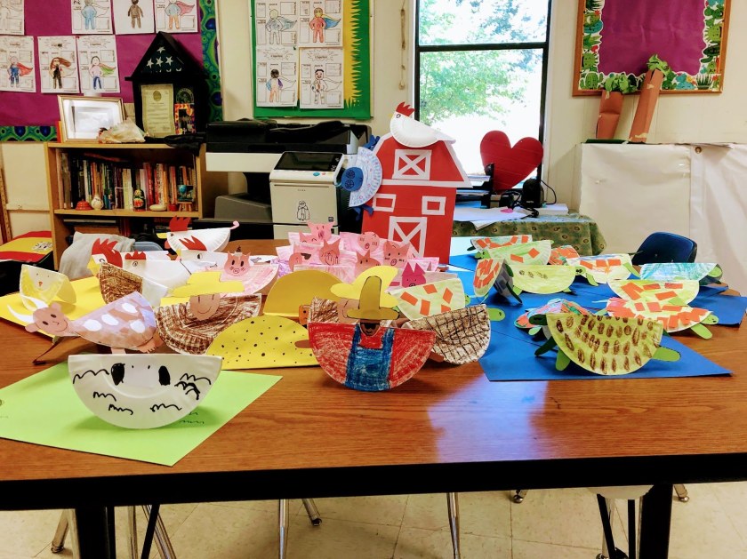 In the second week of session two, Explorers used paper bags and plates to create their own farm at Saklan. Students made pink pigs, green turtles, and white chickens out of paper plates and construction paper. To make our farm more complete, campers also created farmers to take care of the farm and other farm animals.