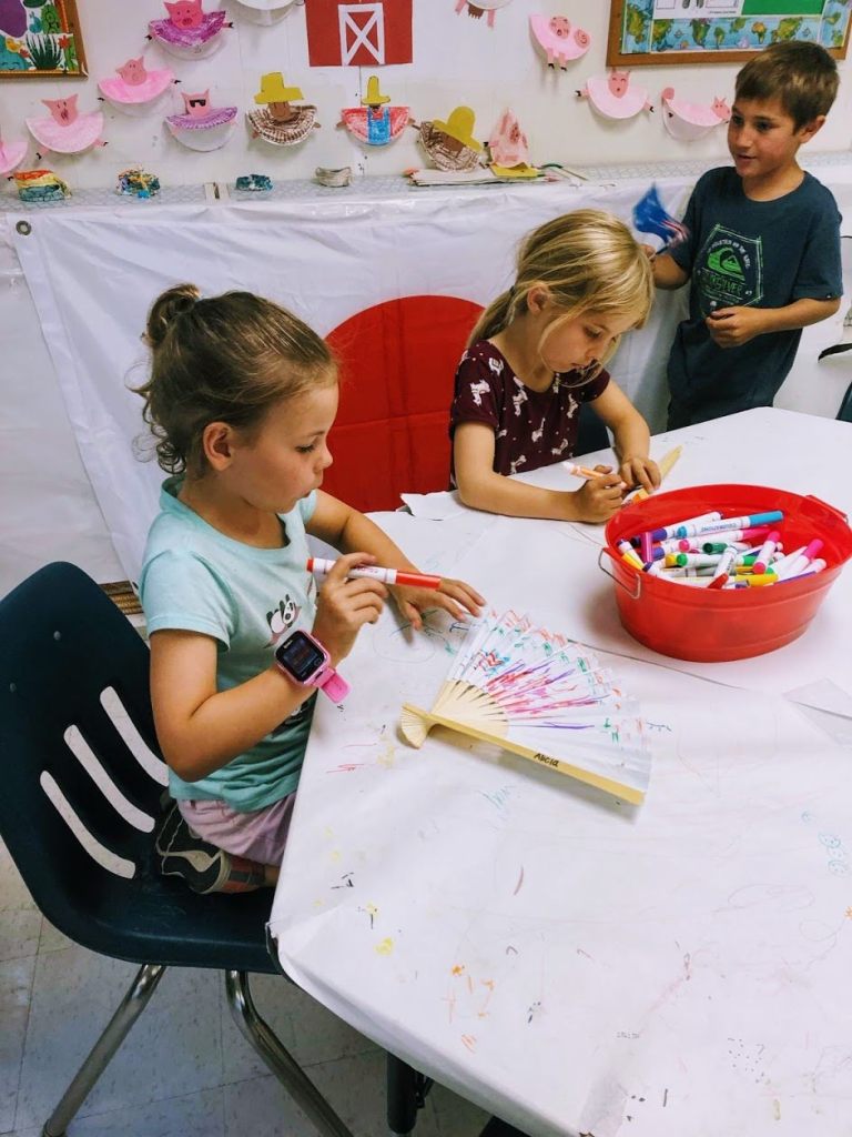 During the final week of session two, our Explorer campers decorated their own personal paper fans with flag-related designs to use against the summer heat. Then, on Thursday, students used construction paper to create elaborate marble mazes, which they enjoyed during free time.