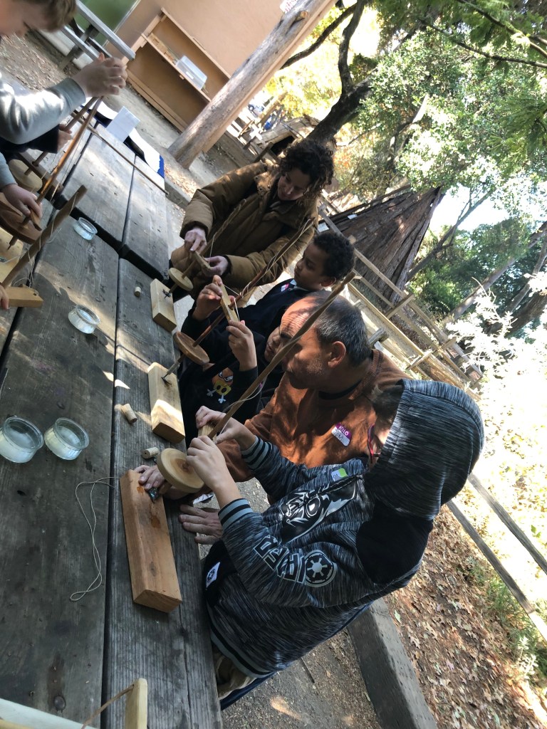 The ofrenda (offering) altar is constructed to help guide the spirits of family members back to the land of the living on the noche de muertos, the night of November 2. The altar holds all four elements- earth, wind, water, and fire. Representing the element of earth, seeds or grains are left out in bowls, while salt is left to cleanse the spirits and purify their souls during the following year. The students made all parts to the altar and learned the significance behind each of the elements. They created embossed metal folk art which is a technique that raises a 2 dimensional image into a 3 dimensional. With embossing, students craft traditional Mexican imagery that surrounds the photos of the loved ones that have passed and sit at the top of the altar. They also created the Dia de los Muertos Lettering using hammers and nails to create the raised and textured designs. They made flores de papel (tissue paper flowers) to build the Día de Los Muertos arch and papel picado (perforated paper). These perforated designs are still hand-cut in Mexico with tissue paper, making it a recognized Mexican folk art. Draped around altars and in the streets, the art represents the wind and the fragility of life.