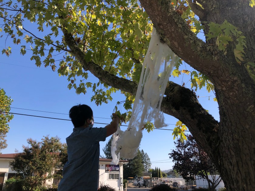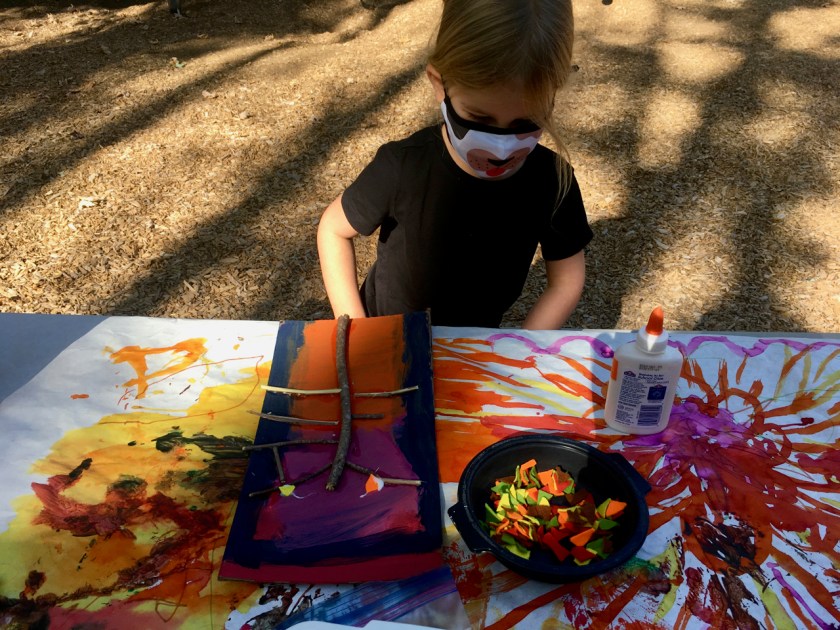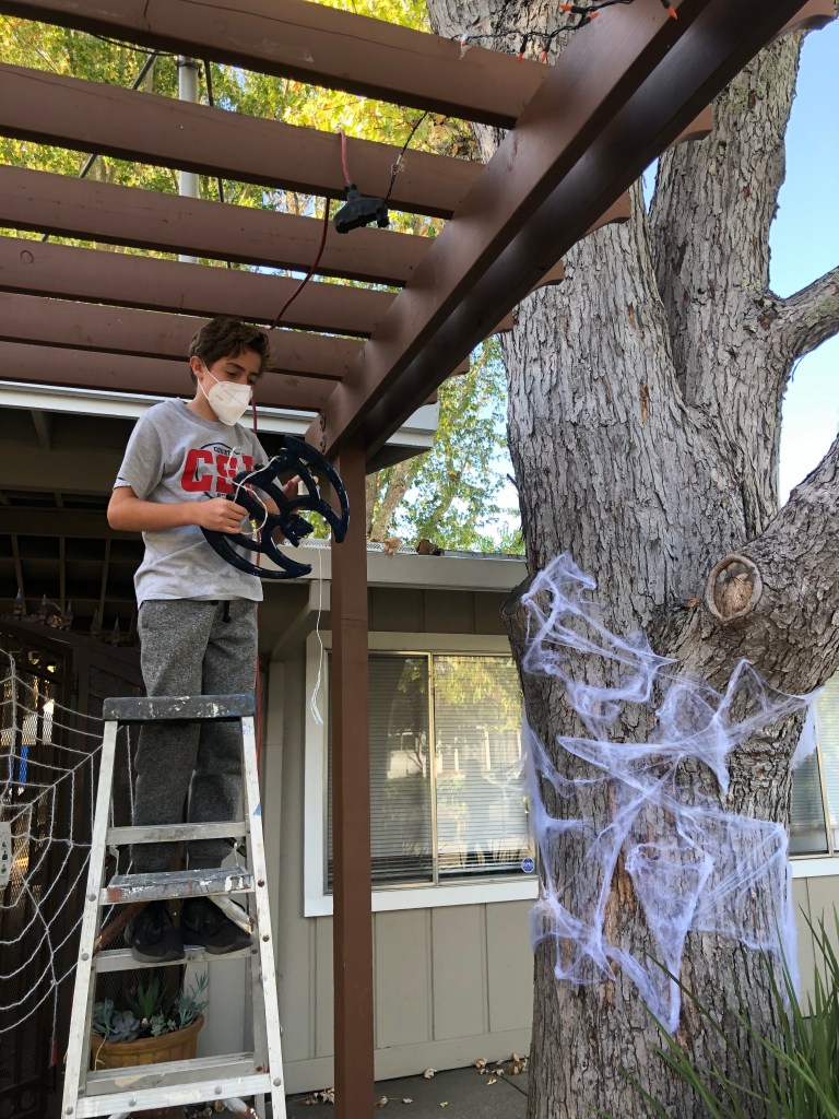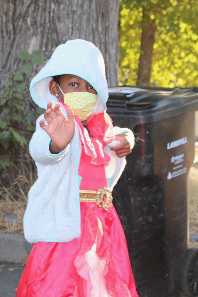 This morning, the Saklan students were very excited to don their Halloween costumes and participate in our Costume Parade! The parade route took the students along the trail to the Holy Trinity parking lot, where parents were in their cars for the drive-in event. The students and teachers paraded through the parking lot, waving as parents cheered and took pictures from their cars, with Halloween music playing in the background. A few middle school students emceed the event and set up a laptop so that students at home could be part of the fun over Zoom.