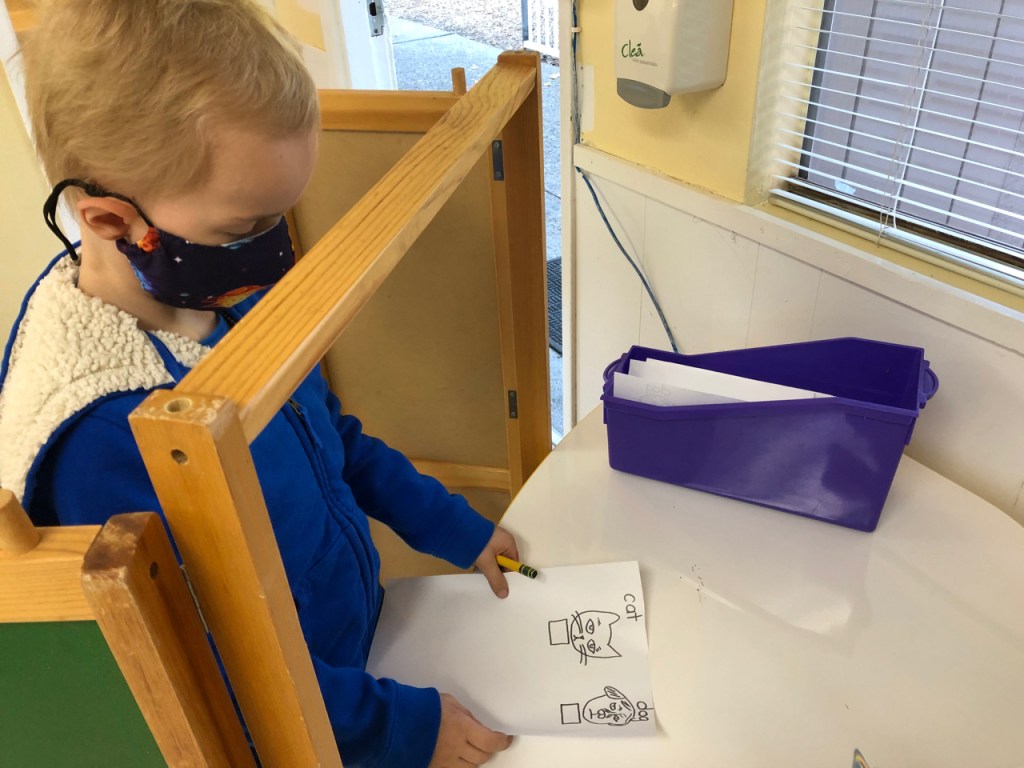 After hearing the story I Voted, by Mark Shulman, and learning about the U.S. presidential election from Scholastic’s Let’s Find Out magazine, the Kindergarten students took part in their own election. With a voting booth, a ballot, a ballot box, and an “I Voted” sticker, the children decided which animal the president should have in the White House, a dog or a cat. With an overwhelming majority, the children voted for a cat! There were a few tears of disappointment, but overall the Kindergarteners were excited to be part of the election process.