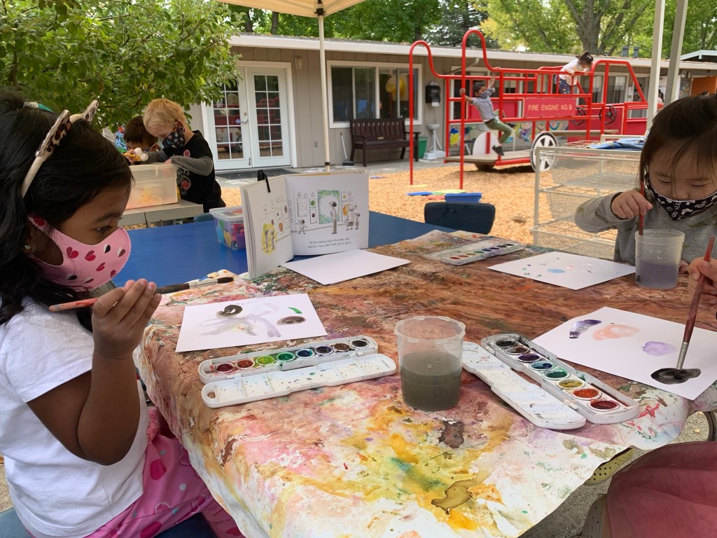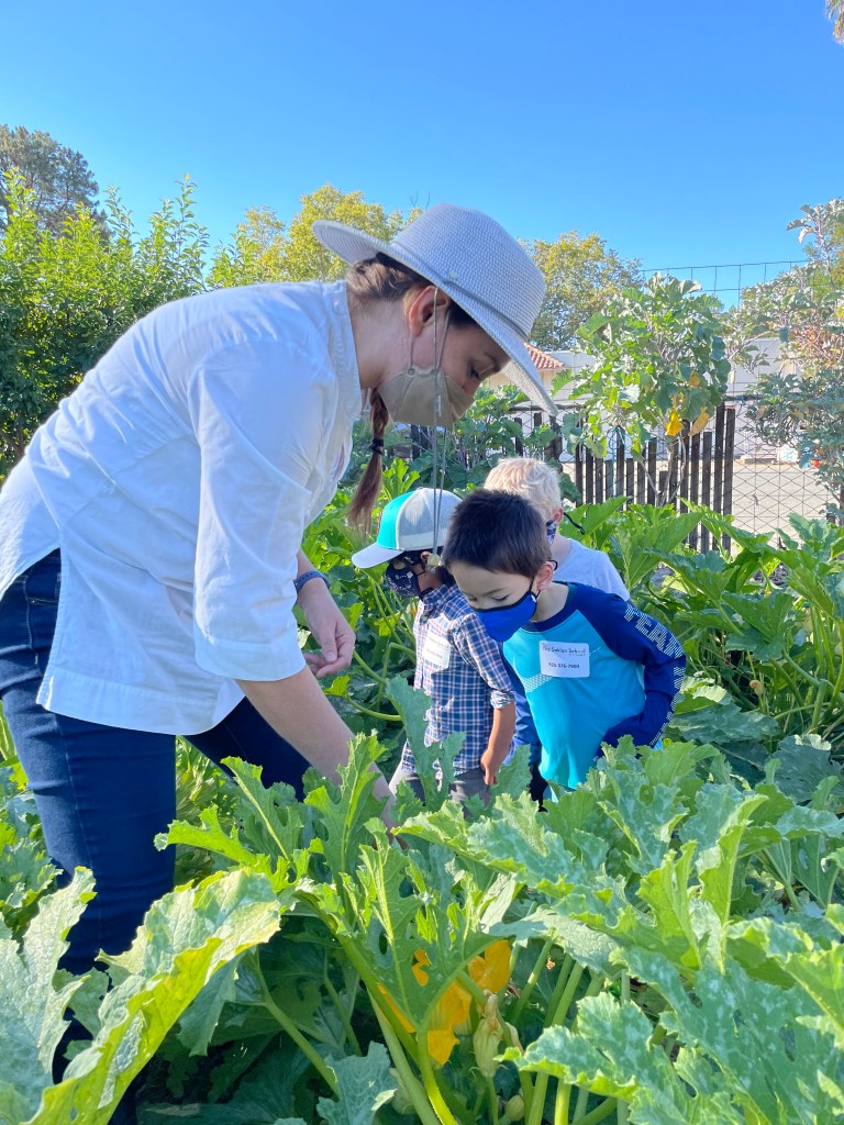 During September and the first week of October, the Hoot Owls, Owlets, first graders, second graders, third graders and fourth graders took their first field experience of the year to Moraga Gardens Farm! Ms. Meredith led each of the classes on the two-block walk to the farm, and then on a tour of the community garden. The garden was filled with eggplants, cucumbers, kale, apples, pears, tomatoes, and much more.