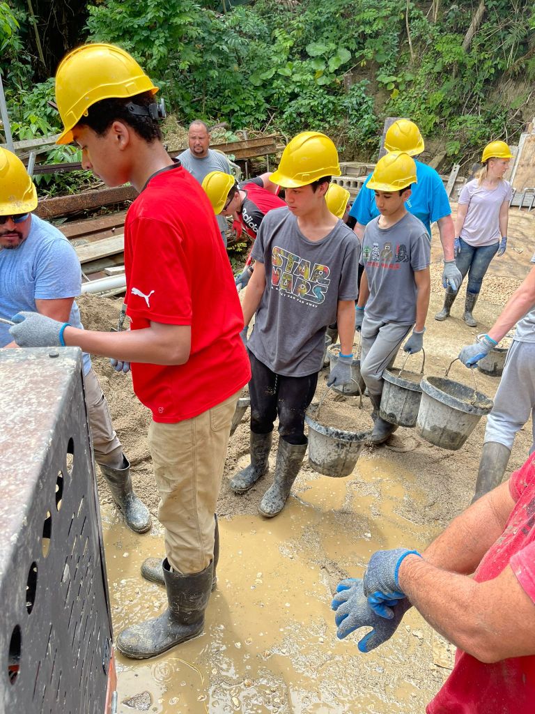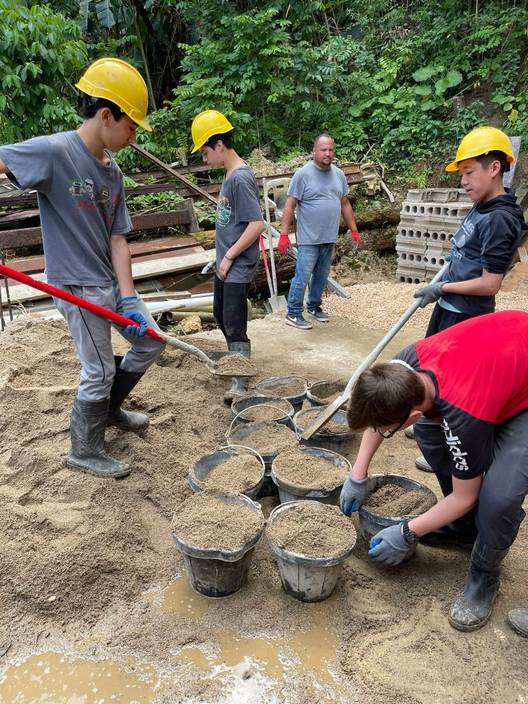In the morning, we woke up, got ready, had breakfast then went on the bus. We took the bus to go to the worksite and help out with rebuilding a house that had fallen due to the hurricane. There was a very nice dog there. While we were at the house, we helped make cement. The 12 of us were divided into groups of 6, one for rocks and one for the sand. We non-stop shoveled sand and rocks into buckets where the adults proceeded to place them in the mixer. If our bucket fell in the mixer and we reached in, it could take your hand off (Si nuestro balde se bajo en el batidora, se puede sacar tu mano!), so the adults took on that responsibility. After we mixed the concrete over 10 times, we had filled the hole where the septic tank was being built. After that, we went back to the Big Yellow House to get ready for a nice few hours at the beach. We found a cracked Go-Pro in a bed of seaweed, but unfortunately it stuck to the ground and could not be retrieved. After refreshing a bit, we went on a walk to a nearby island close to the place we were swimming in, where we took pictures. There were crashing waves and nice sand on our feet, with palm trees swaying around us. After that we had a nice walk back, where the water was warm, and there were fishermen near the shoreline catching a ton of crabs! We soon came back to the Big Yellow House where we had (Virgin) Pina Coladas prepared by one of our tour guides, Annika. Later that night, we had pasta with a choice of marinara or alfredo sauce. Lastly, we had games and the two teams competing were “Los Pollos Hermanos” and “yes, YES!”. The games ended in a tie because everyone is a winner at The Saklan School! We had a very nice day and we can’t wait for tomorrow!