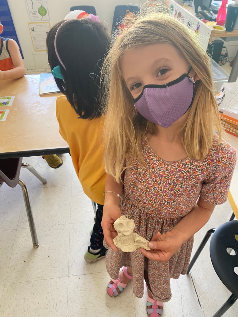 Each kindergartner was asked to imagine their Yet. They then sketched and colored their Yet. Next, students used clay to bring their Yet to life. They used paint, and then added feathers, googly eyes and glitter glue to further define their Yets.