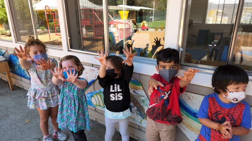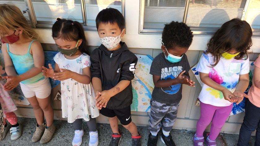 The teachers put oil and cinnamon on the students’ hands and told them to pretend the small specks of cinnamon were germs.