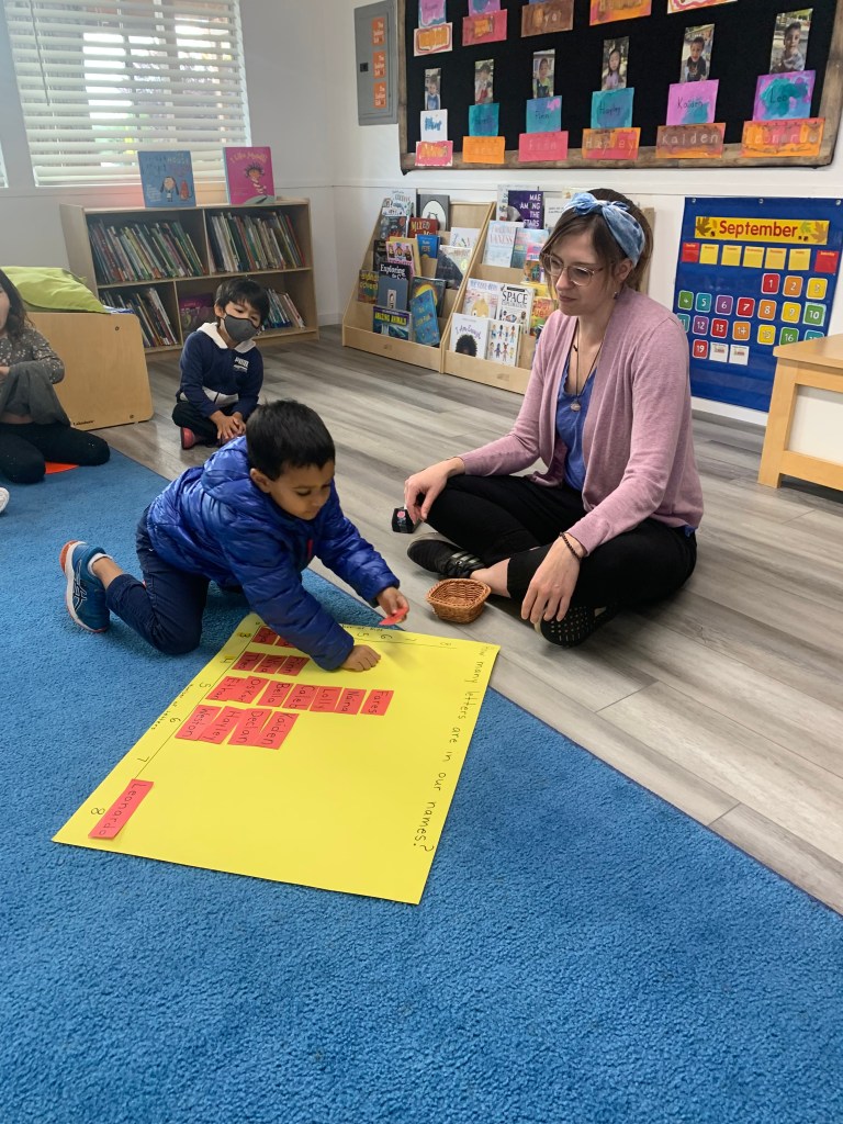 The Hoot Owls made their first graph of the year! The students learned that a graph is a picture that helps people “see math.” The Hoot Owls worked on this activity together during circle time. Each Pre-K student counted how many letters were in their name and then put their name above that number on the graph. After all owls added their name to the graph, the students noticed that no one in their class has a seven letter name. They also noticed that Leonardo has the longest name, and that eight kids have five letter names.