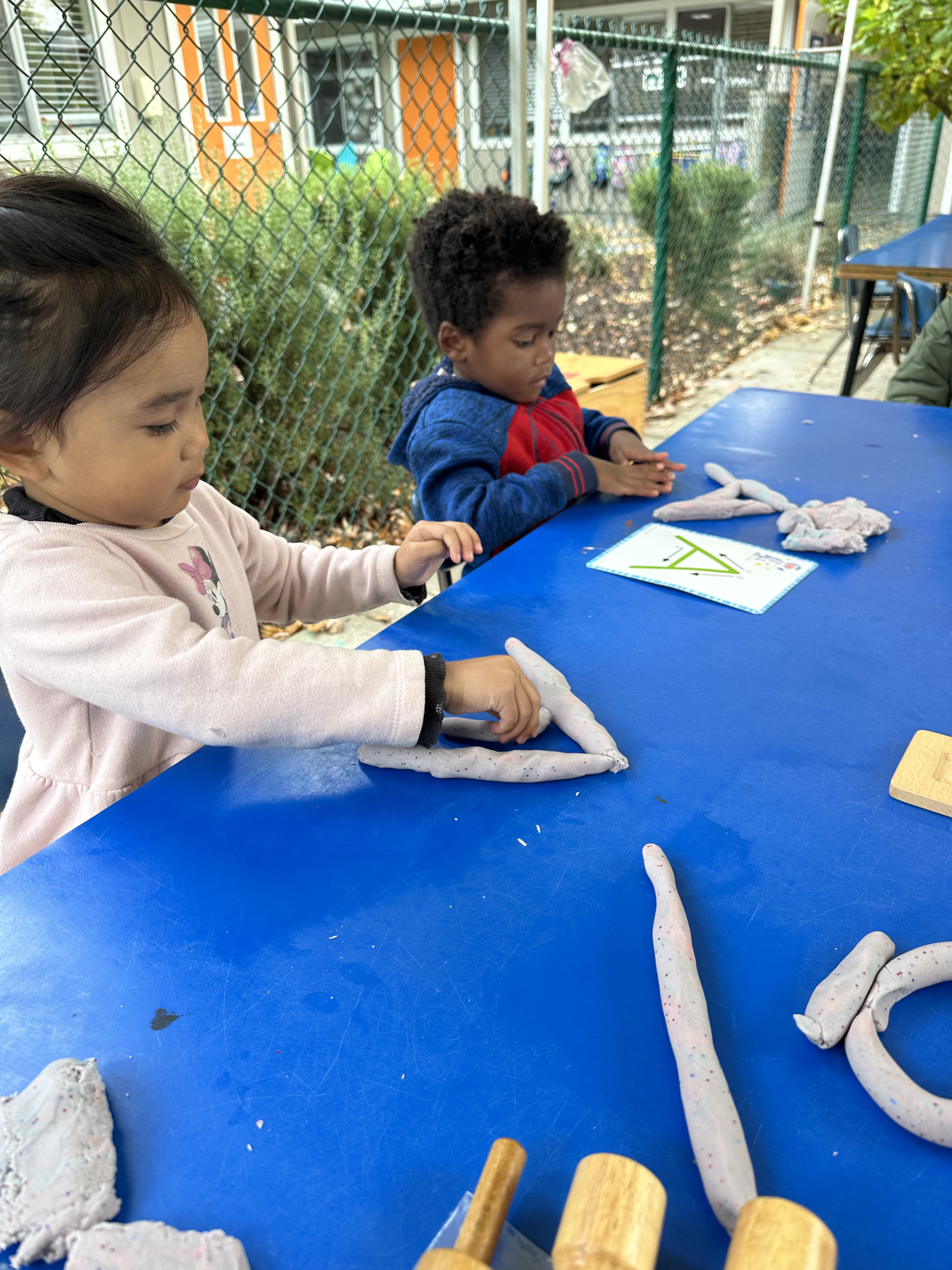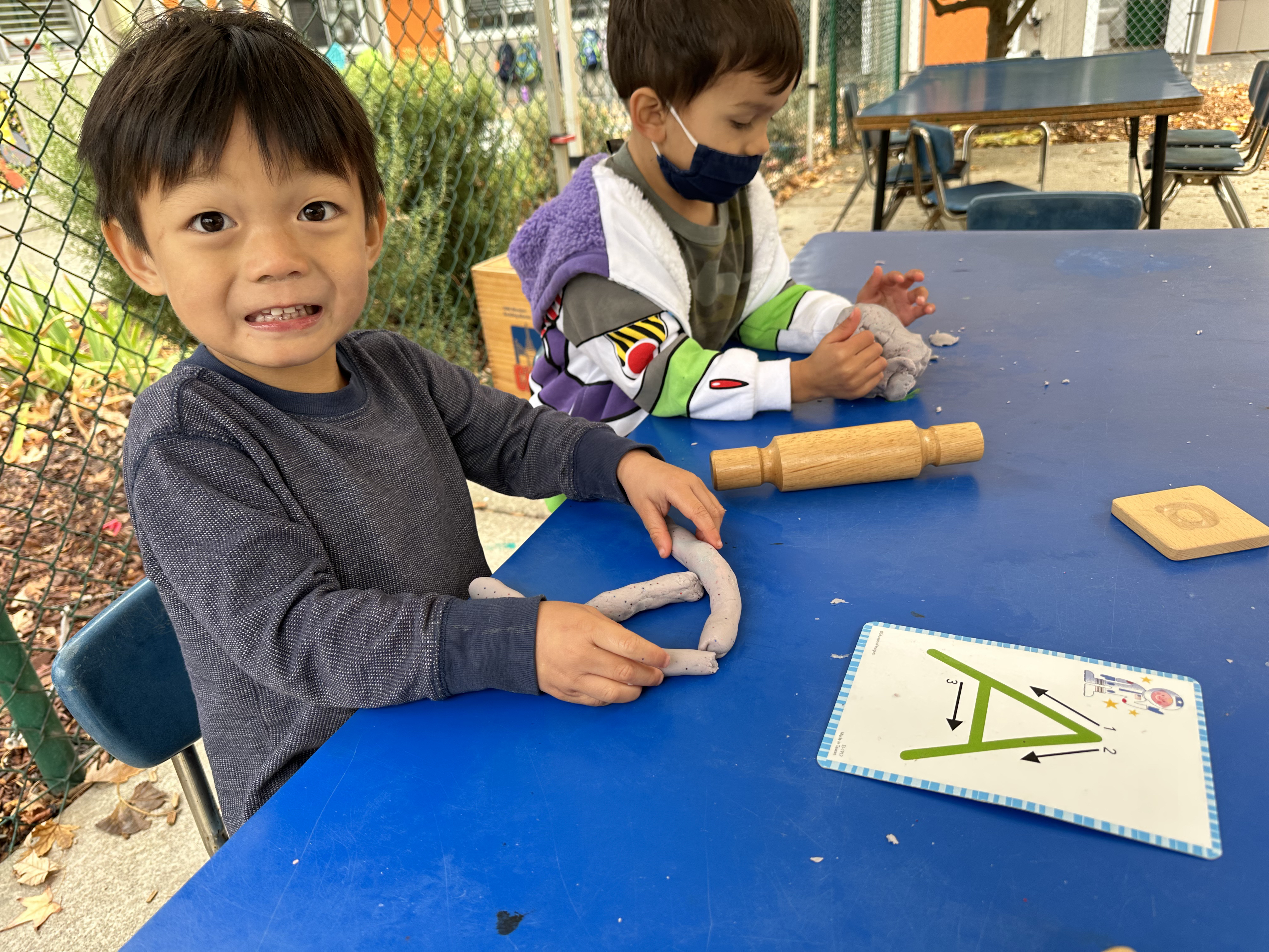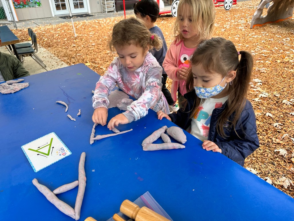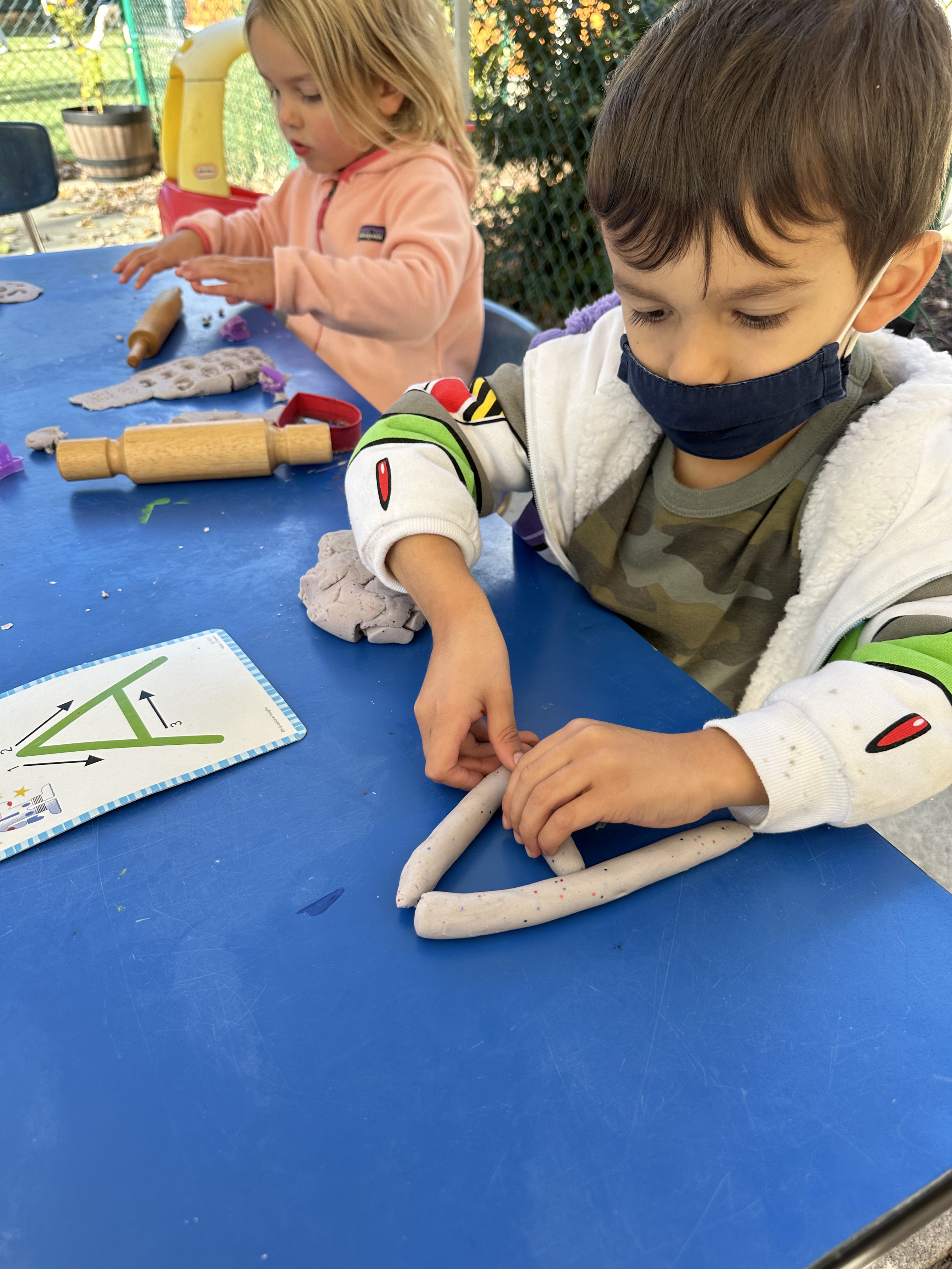 The Owlet class has been familiarizing themselves with the letters of the alphabet. The students have been practicing finding letters around the classroom, brainstorming words that have the same beginning letter sound, and building letters with different materials.