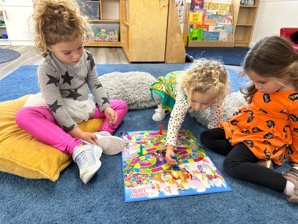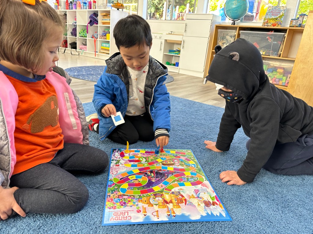 For the letter Cc, the Owlets read the book Clara Caterpillar by Pamela Duncan Edwards, and then made caterpillars out of egg cartons. They also learned how to play Candy Land! This game helped the Owlets practice many social-emotional skills, including: taking turns, following rules, and being a good sport whether they won or lost the game.