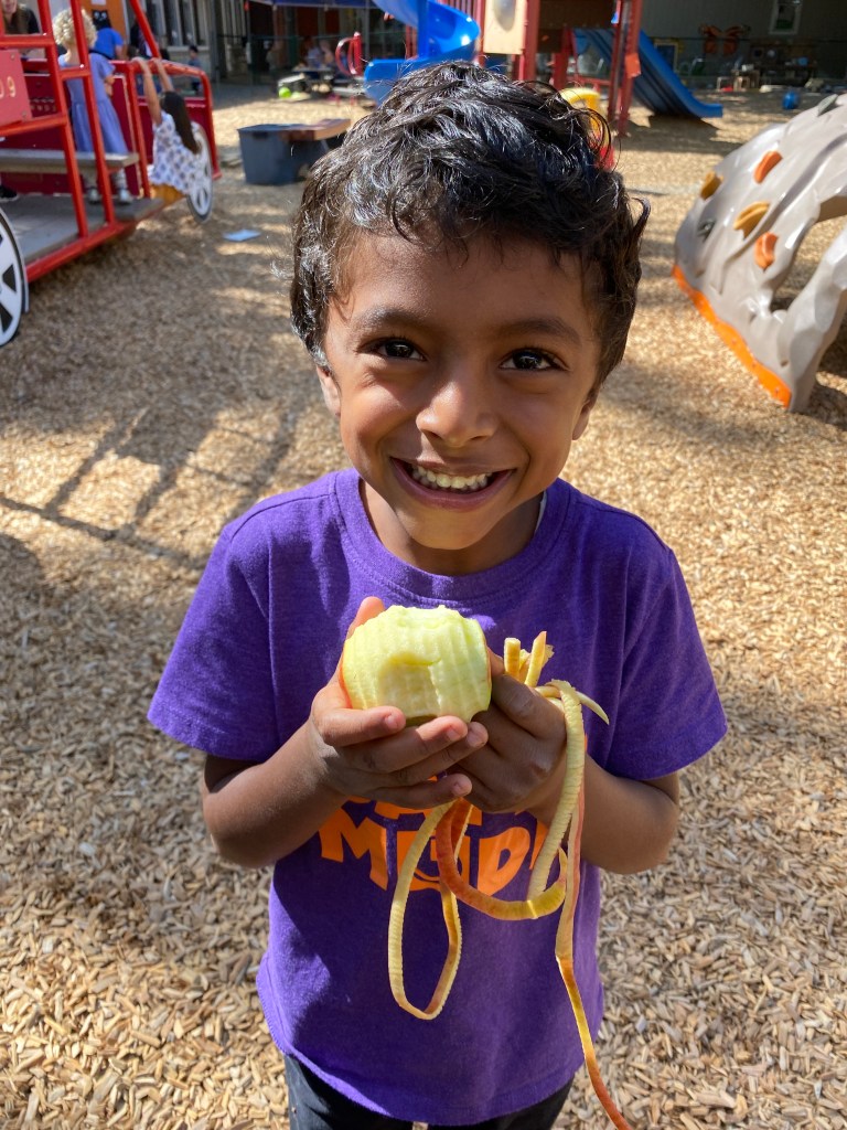 Before the Thanksgiving Break, the kindergarten class concluded their study about apples and apple trees. After learning about apples, their life cycle, the parts of an apple, taking observations of apple trees at Moraga Gardens and the tree on the ECE playground, and interviewing experts, the students answered their essential question: “How can we help our apple tree thrive?”