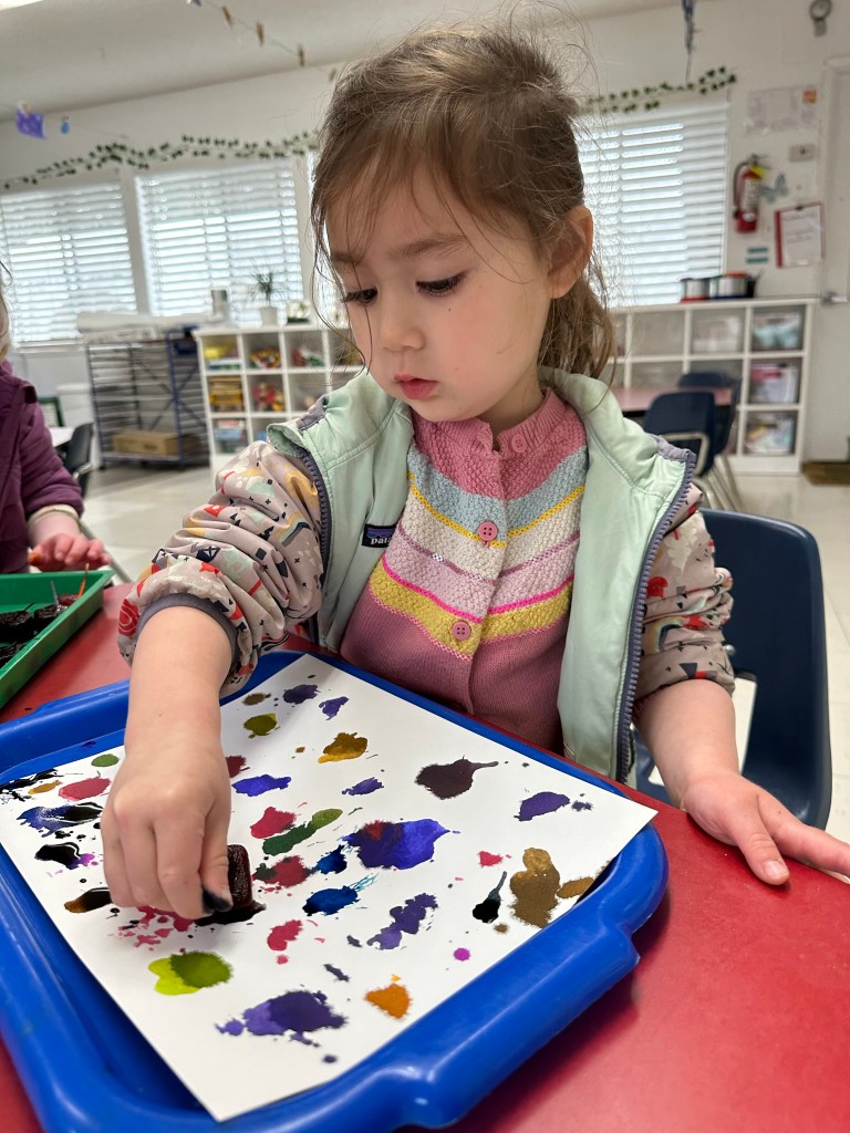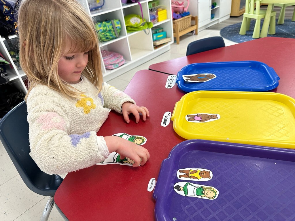 One day, the students cut ⅙ yard from ⅔ yard strands of ribbon they’d first measured and cut, then worked out how much of the ribbon was left. “This much!” was a great answer, but not to someone who was unable to see the ribbon, so they didn’t get out of the math that easily. This helped the students to see a need for being able to express the difference as a fraction that both ⅔ and ⅙ could convert to: sixths. Thus lowest/least common denominator, ⅙ of 36”, ⅔ of 36”, and accurate measurement skills were all incorporated into this hands-on fraction subtraction introductory activity.