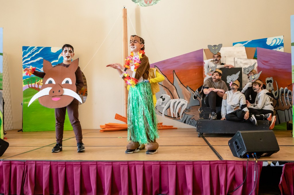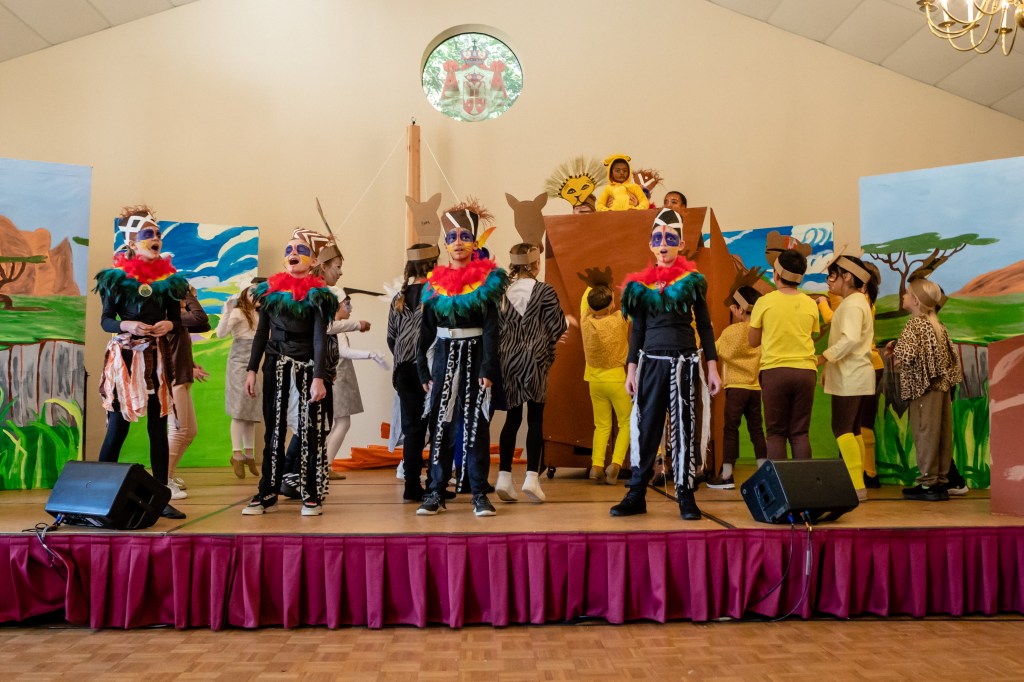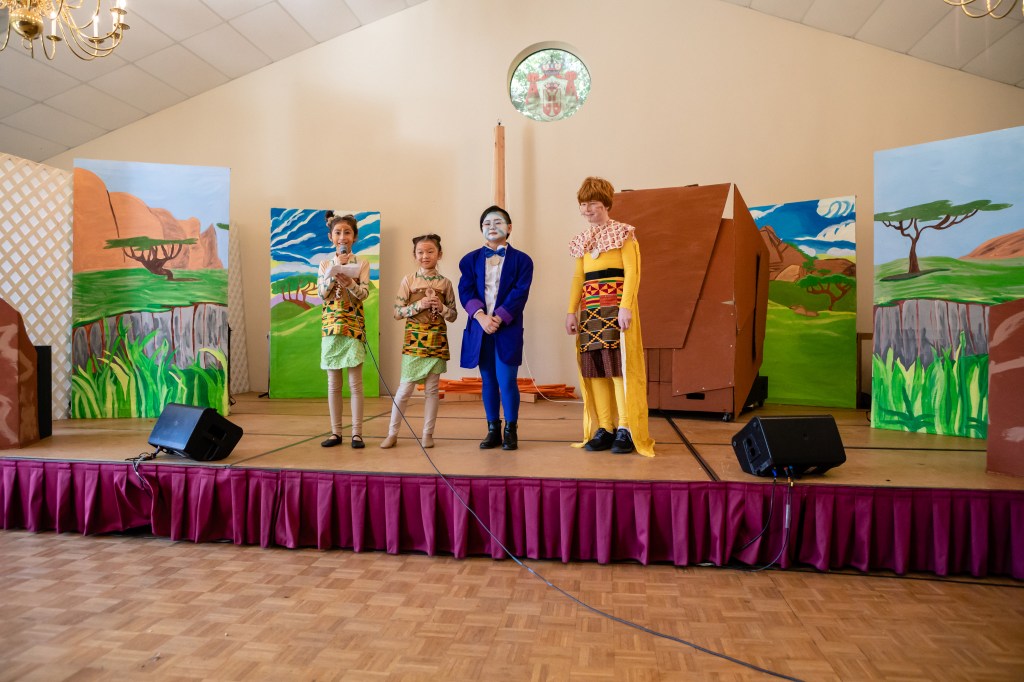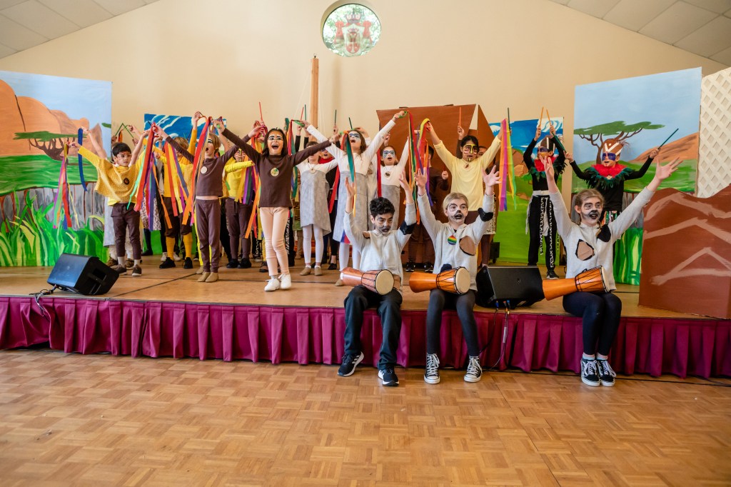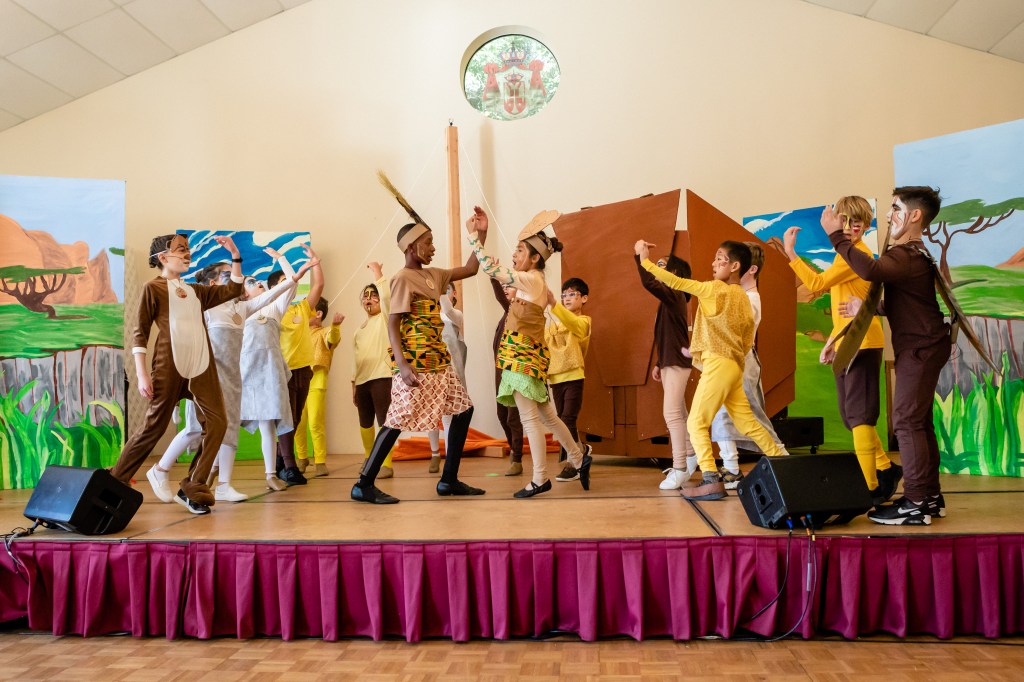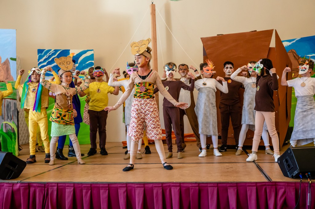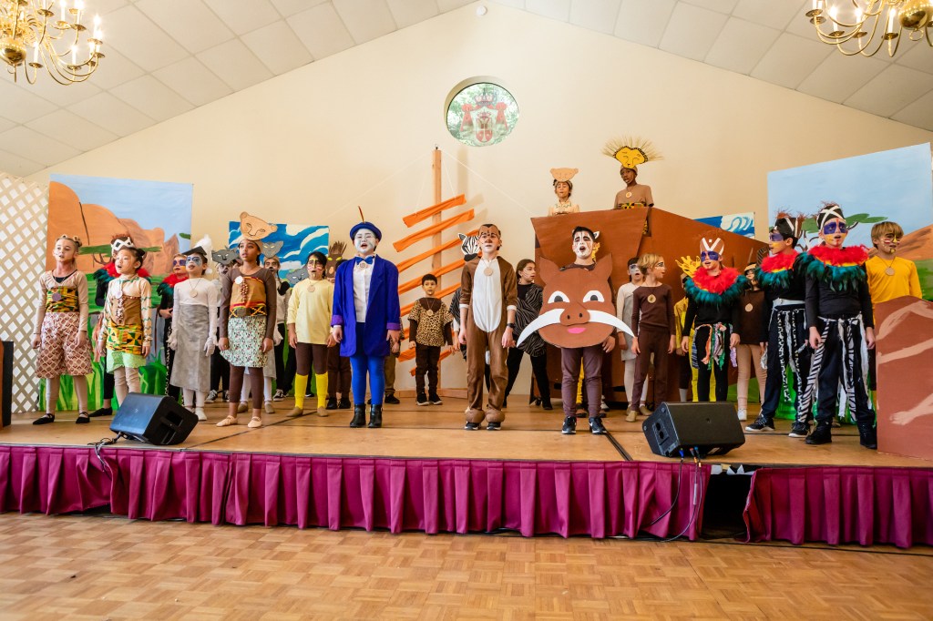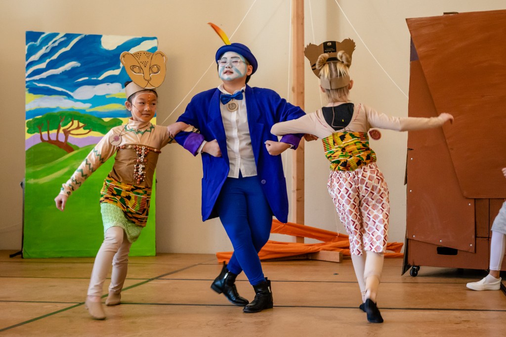Saklan’s production of The Lion King KIDS attempted to honor the Broadway tradition of the show. Our students’ goal was never to “pretend to be animals” or to hide their humanity, but rather to highlight how connected we, as humans, are to the animals that are portrayed. Their headdresses, designed by the students themselves in art class, took inspiration from real African masks and textures, and the choreography brought in the element of circles over and over again, reminding us that we are all a part of the circle of life, along with every animal on the savanna. Through their performance, our students claimed their place in this world as protectors of that circle of life. They spent hours learning lines, music, and choreography, but also discovered elements of the languages of Xhosa, Zulu, and Swahili. They know about the range of lions in Africa, and what role buzzards serve in the circle of life. They know that hyenas are social and deeply misunderstood, and so much more. They took that knowledge and used it to become advocates for the apex predator of the African grasslands, the African Lion.