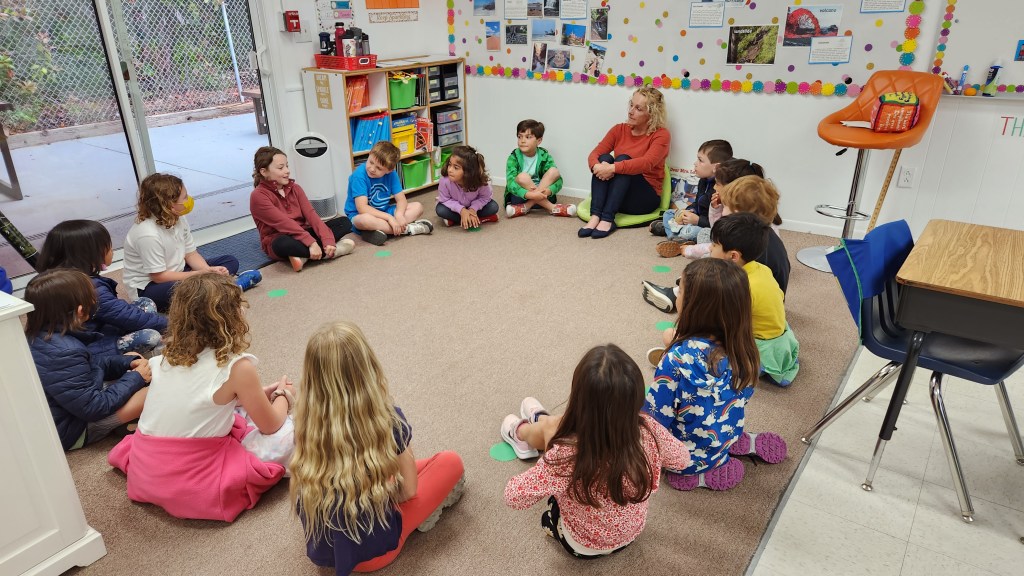 After a project-based learning unit on homes around the world, the first graders were interested in helping those who don’t have homes. Brett Lorie, one of the founders of 10,000 Lunches, was beyond thrilled to hear that the 1st grade students wanted to do something to help the unhoused. He spoke to the class, sharing about the organizations mission and the people (and dogs) they serve. Brett’s talk helped to humanize the problem of homelessness in the Bay Area for the first graders. Having students interact with changemakers like Brett helps to spark their own social consciousness.