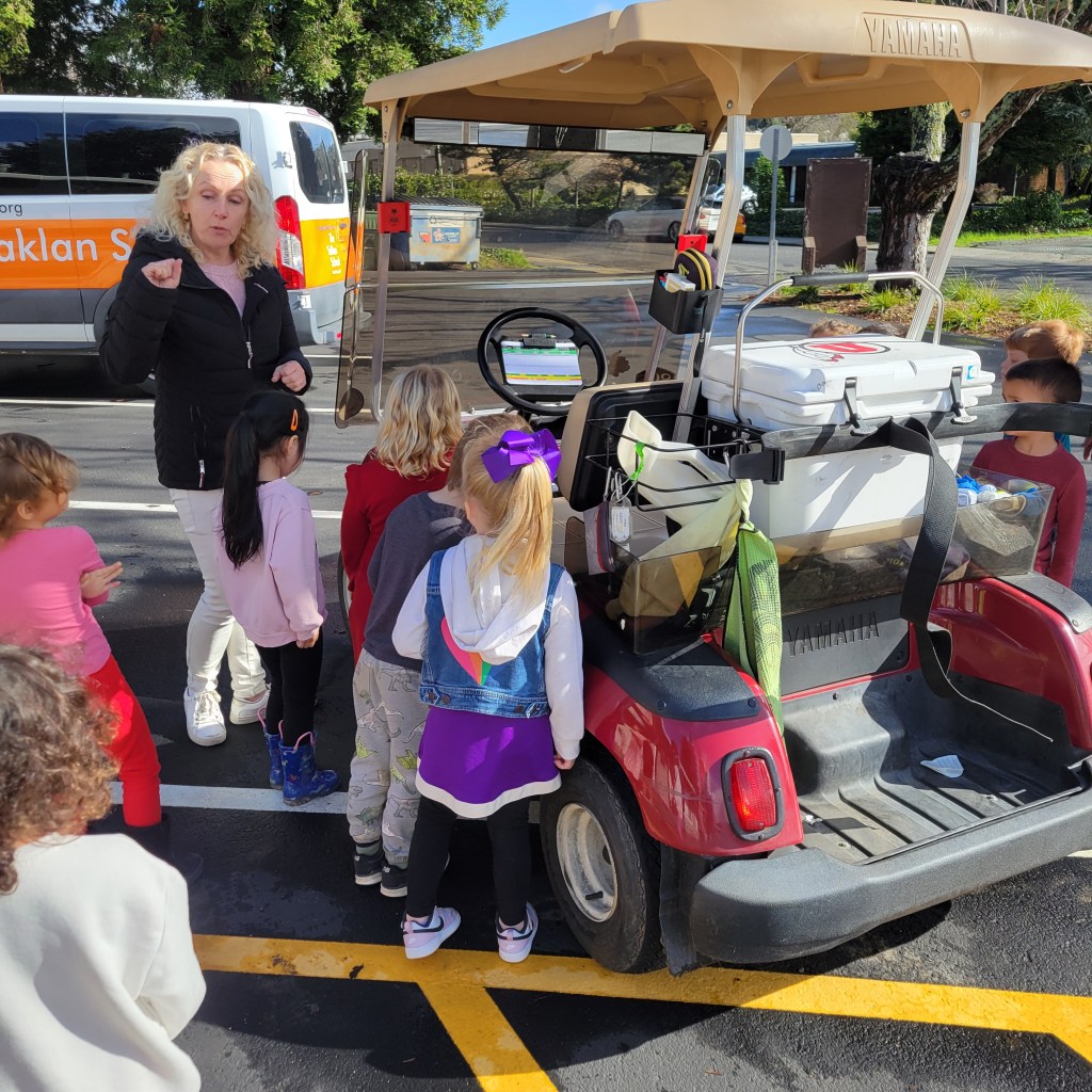 The Owlets were excited to see two different golf carts and to learn about the batteries that operate them. They noted that golf carts also have wheels, and are similar to cars but without doors.