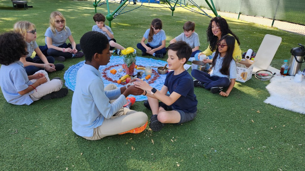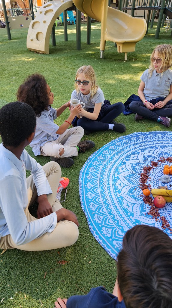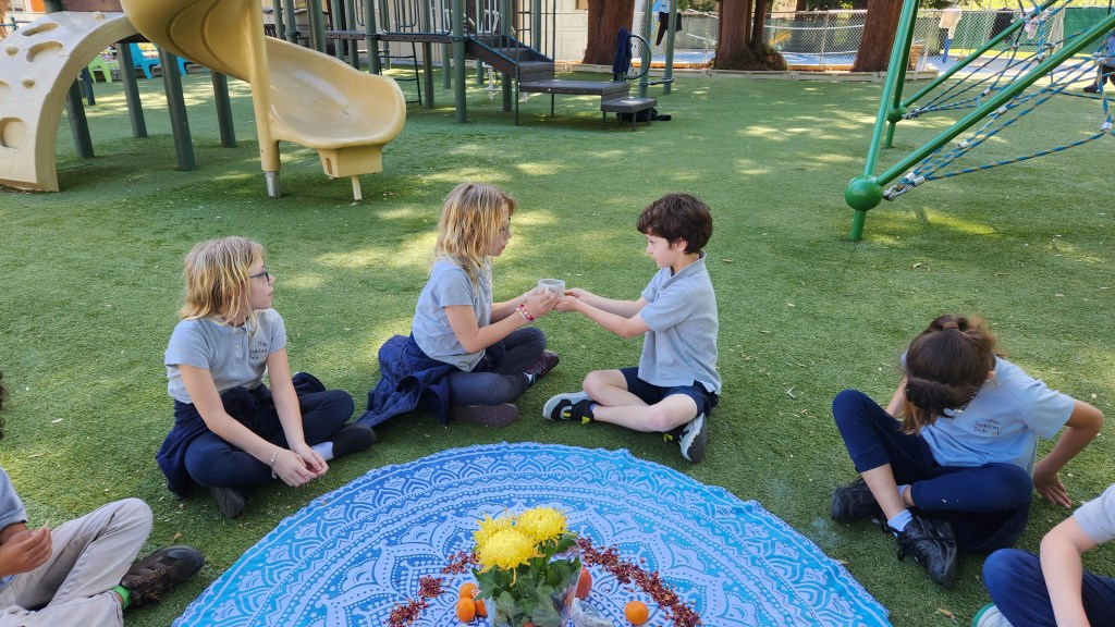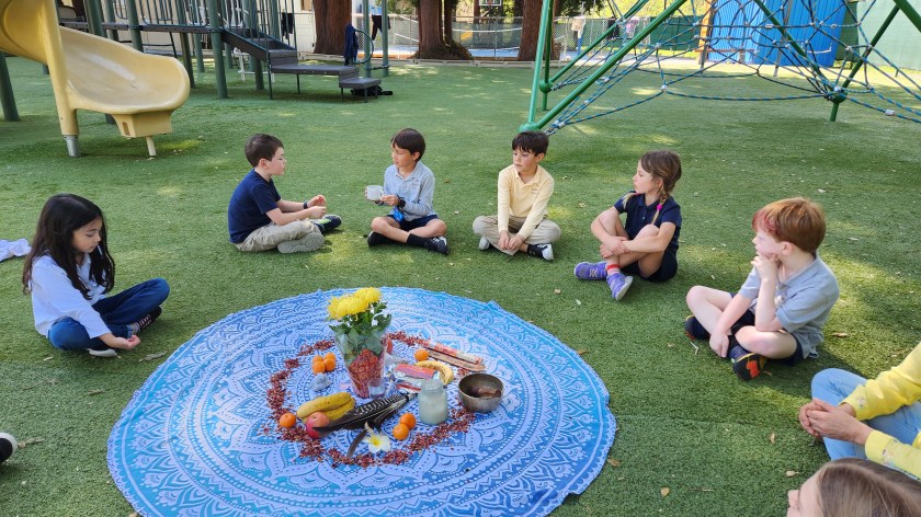 On Tuesday, Saklan’s 1st – 8th grade students gathered with their family groups to discuss how to be loving, the March social emotional learning focus. Together the groups shared actions to show love or care for others.