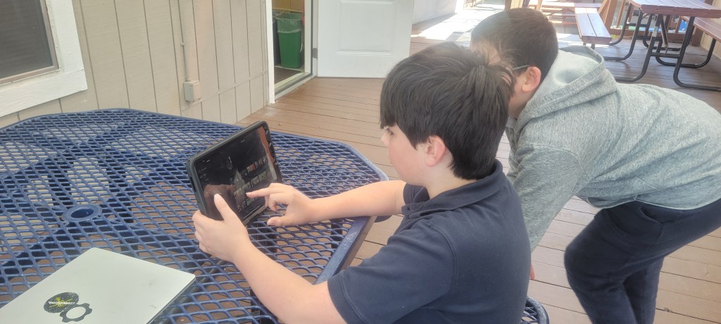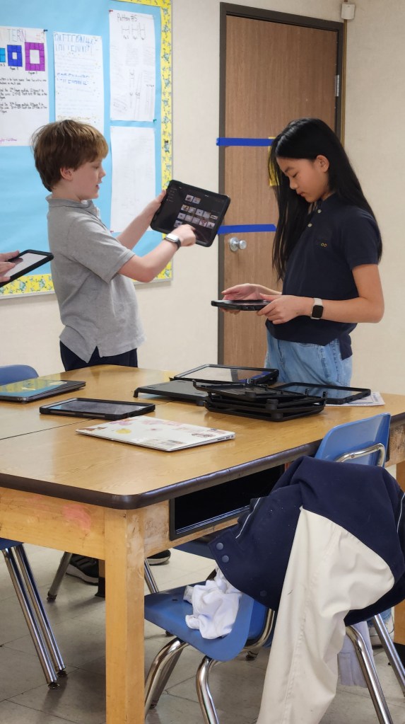 This year, our sixth-grade students have showcased extraordinary creativity and courage by stepping into the role of LBD instructors. Stephen, Rebecca, and Aliya used Saklan’s new i-Pads (made possible by generous fund-a-need donations to last year’s auction) to film short video skits that were scripted joyfully in the first LBD class. The laughter and fun of each LBD period was palpable. The students learned how to edit by adding sounds and music and incorporating text and images to make their videos silly and fun. Although the film topics were completely student-created, they learned invaluable filming and editing techniques.