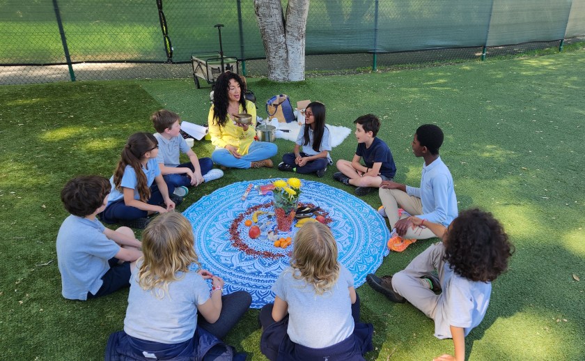 One of the most special elements of Saklan Project-Based Learning is the ways in which annual units take on different elements each year. For the last three years 2nd and 3rd grade students have designed the backdrop for our spring concert at the Lesher Center as part of a PBL unit on color and communication. This unit centers on the driving question: How can we understand the art world to design a backdrop that communicates “garden?”