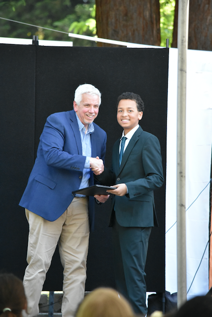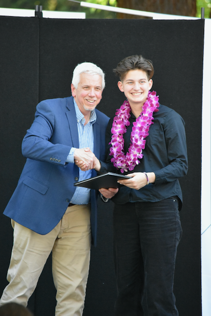 A highlight of the ceremony was a speech by Saklan alumnus Finn Anders. Finn graduated from Saklan in 2017 and has since completed high school at The Athenian School and graduated from Kenyon College earlier this month. The wisdom that Finn shared with the graduates about their time at Saklan and keeping their fire burning was inspiring! Equally heart-warming was Dianne leading the audience in singing “In My Life” by The Beatles.