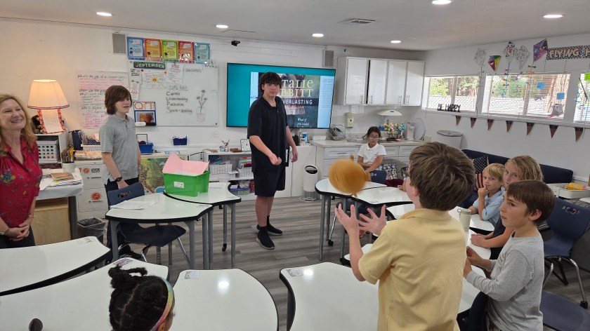 The group time began with a warm welcome as students gathered in their designated Family Group rooms—spaces they will return to throughout the year. Each student introduced themselves by sharing their name, grade, and a favorite thing, before jumping into fun icebreakers like the Stuffed Animal Name Game Toss. Laughter and teamwork quickly arose.