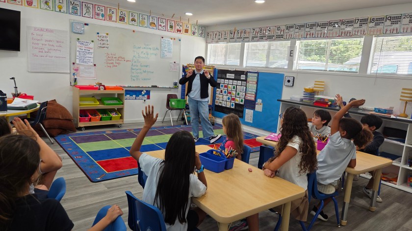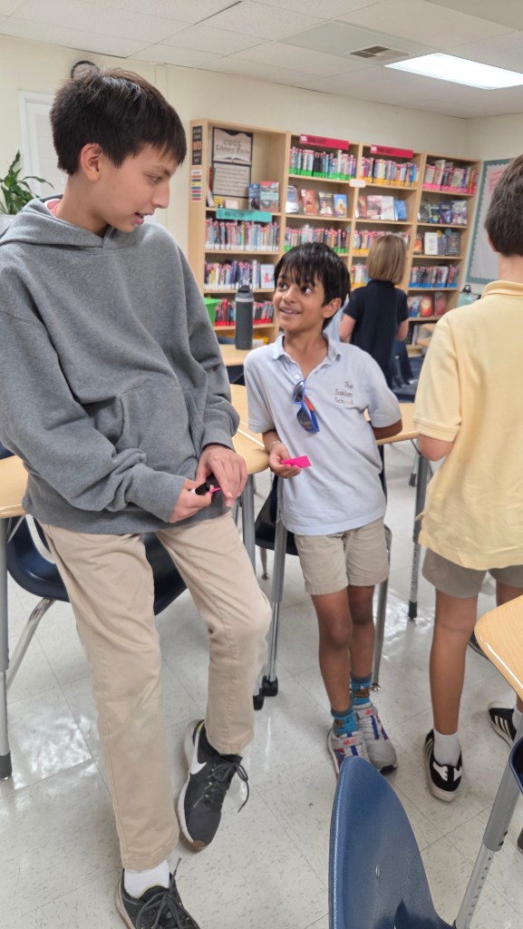 One highlight was the “Flamingo Mingle” activity, where students paired up to ask and answer fun questions. This gave everyone the chance to discover new things about one another and helped spark connections across grade levels.
