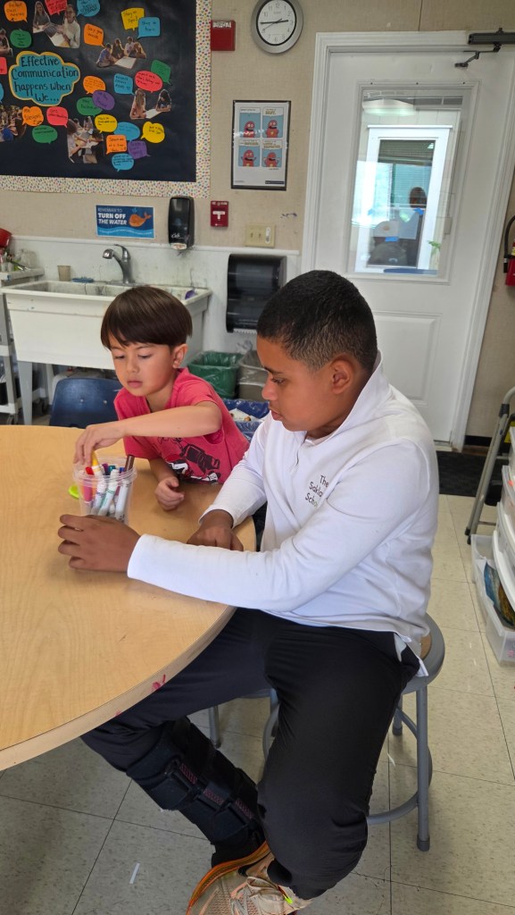From there, the groups turned their attention to the heart of the lesson: inclusion. Students talked about what it means to be inclusive—welcoming others, working with new partners, showing kindness—and why it’s important at Saklan. Together, they brainstormed ways inclusivity creates a comfortable, supportive environment where friendships can grow.