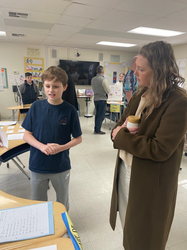 At the Symposium, each student displayed their final paper, vocabulary cards, Need to Know questions, and an infographic poster to accompany their short oral presentation about their topic. They then answered follow-up questions from visiting parents, teachers, and their 6th and 8th-grade peers.