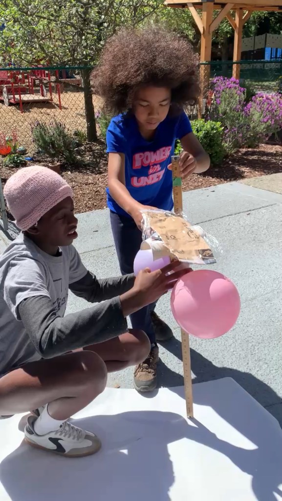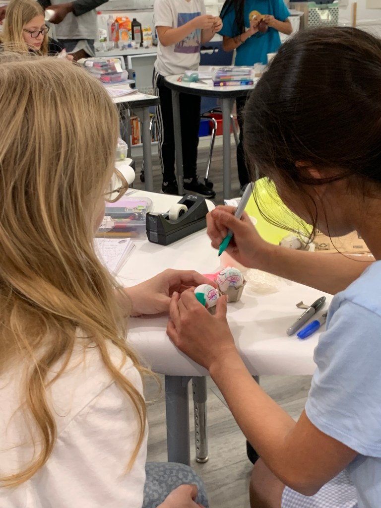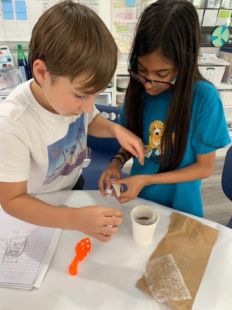 From there, students moved into a full engineering cycle, planning, designing, and testing “crash helmets” to protect their egg “brains.” Using materials like balloons, cotton balls, bubble wrap, and pompoms, they built creative prototypes with focus and purpose. The classroom quickly transformed into a hub of innovation and collaboration.