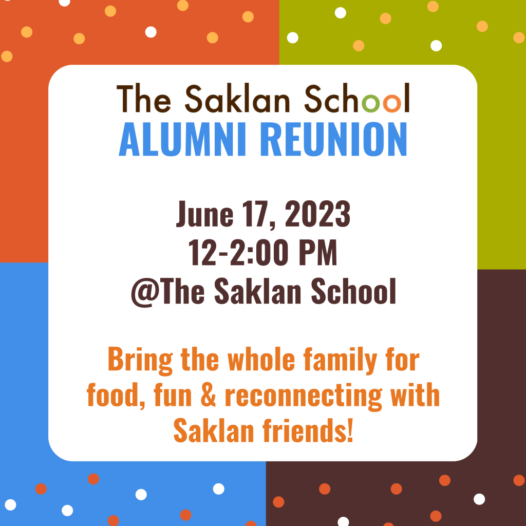 Calling all Saklan alums, alumni families, and Saklan staff members (current and past)! You are invited to join us for our Alumni Reunion on Saturday, June 17th at Saklan.