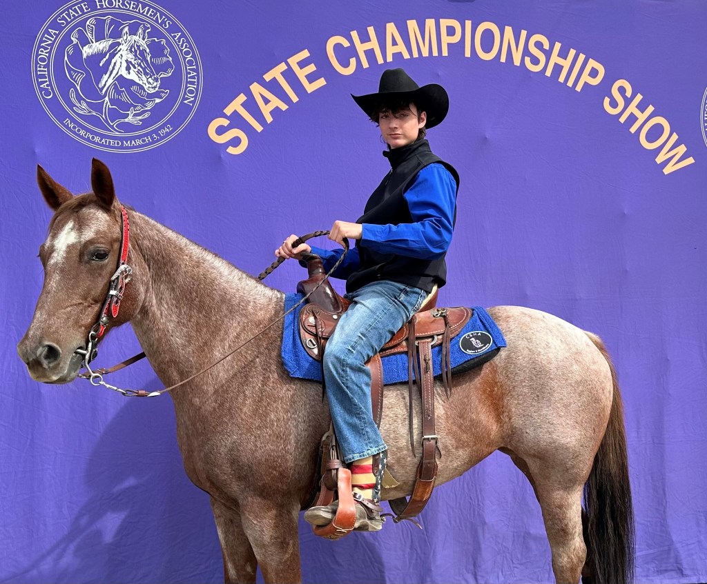 Dash Nowak, a member of Saklan’s Class of 2022, is currently a junior at Holden High School in Orinda. Dash has long been riding horses, and these days he and his horse Daisy are actively involved in rodeo competitions. In 2024 they qualified for the California State Championship in barrel racing!