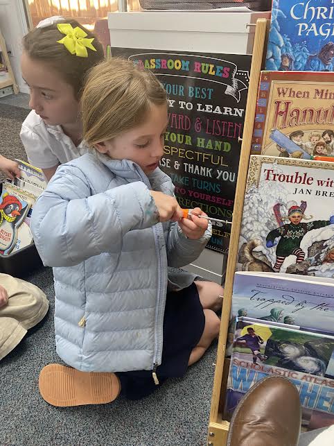 In December, the first graders learned about simple machines. The class discussed what work is (the transfer of energy from one object to another in order to make the second object move in a certain direction) and what makes work easier and harder. Then they learned about the six simple machines by participating in a series of hands-on activities.