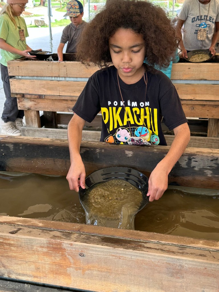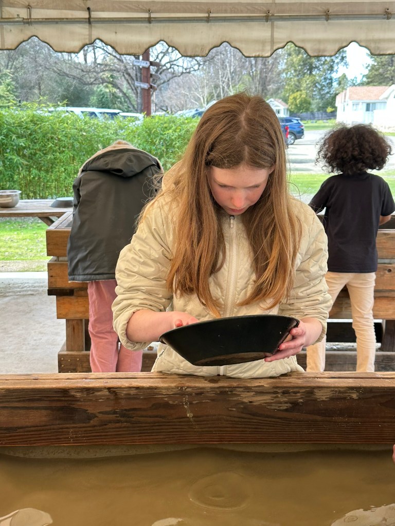 Of course, no trip to Coloma would be complete without the thrill of gold panning! Armed with pans and determination, the young prospectors eagerly sifted through pay dirt from the American River, their excitement growing with every swirl of water. Shouts of EUREKA! rang through the air as gold fever took hold, mirroring the elation of those who had once sought their fortunes in the very same spot.