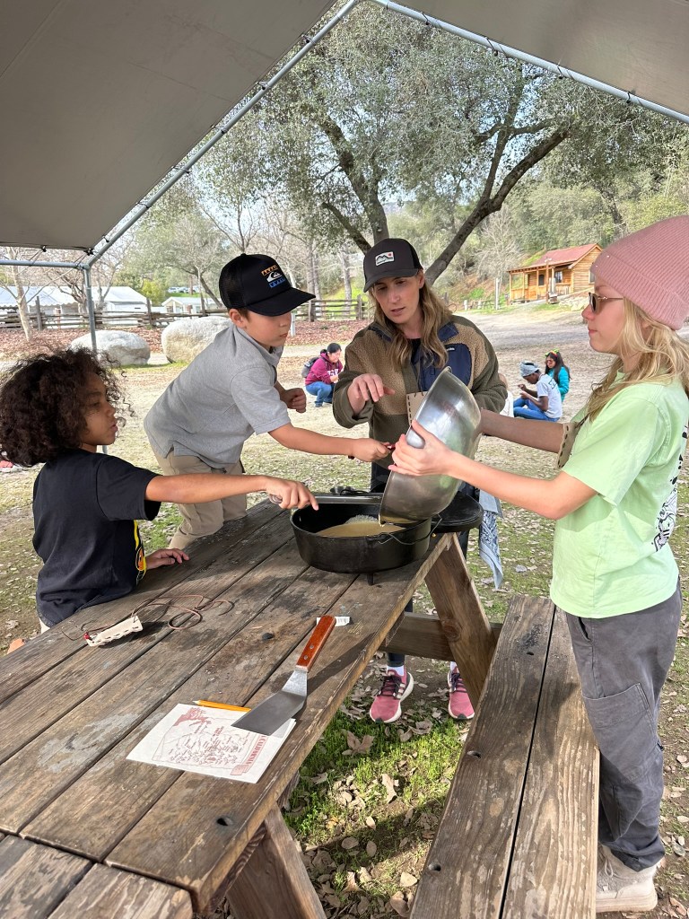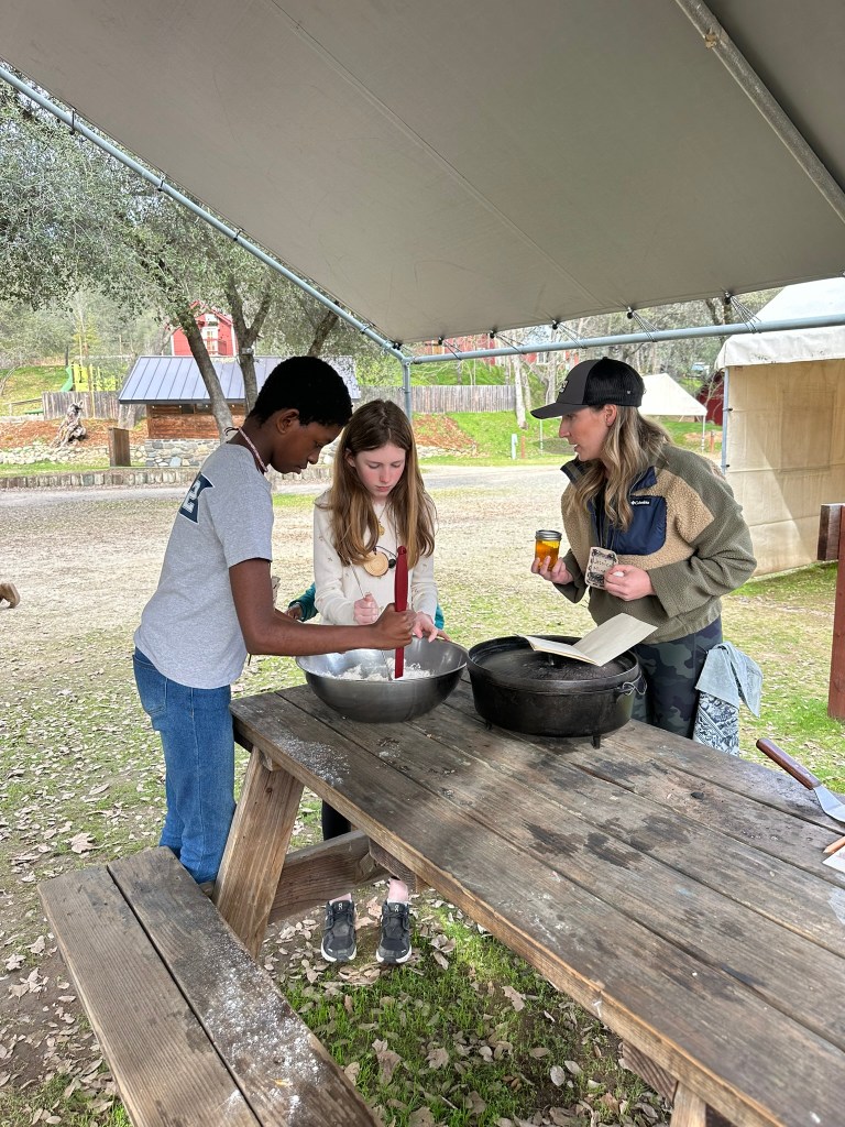 The adventure began with a visit to a bustling mining camp, where the aroma of freshly baked cornbread filled the air. The students purchased ingredients from a general store, just as miners once did, and patiently waited as the bread cooked over an open fire in a cast-iron Dutch oven. While the cornbread baked, they learned essential pioneer skills—sewing, washing clothes on a washboard, and working together to build a shelter. Living the life of a Coloma miner along the riverbanks provided a first-hand glimpse into the daily challenges and triumphs of those seeking fortune in the golden hills.
