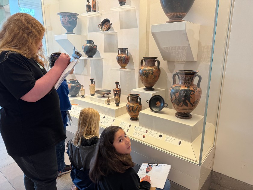Last week, the class enjoyed a field experience at the Blackhawk Museum where they toured the Into China exhibit as a kick-off to their unit on ancient China. This was followed by a visit from Asian Art Museum storyteller docent Nancy Parker who shared stories that connect to the museum’s artifact collection about Confucius, Buddha, and the Silk Road trade.