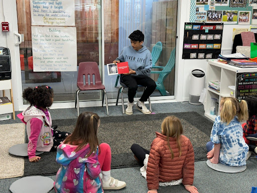 Kindergarten, first grade, and second grade students gathered in the pavilion to meet with Saklan parents Molly and Manju, who read Diwali by Hannah Eliot. Inspired by the story, students created vibrant rangoli—decorative designs traditionally made on the floor or tabletops using colored powders, rice flour, sand, or flower petals—to celebrate the spirit of joy, color, and togetherness that defines the festival.