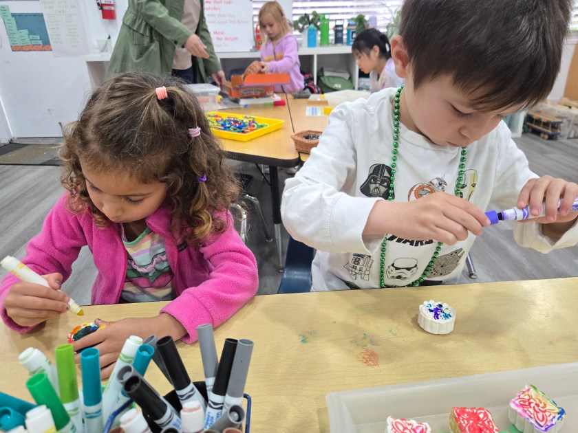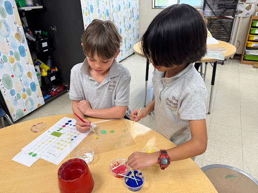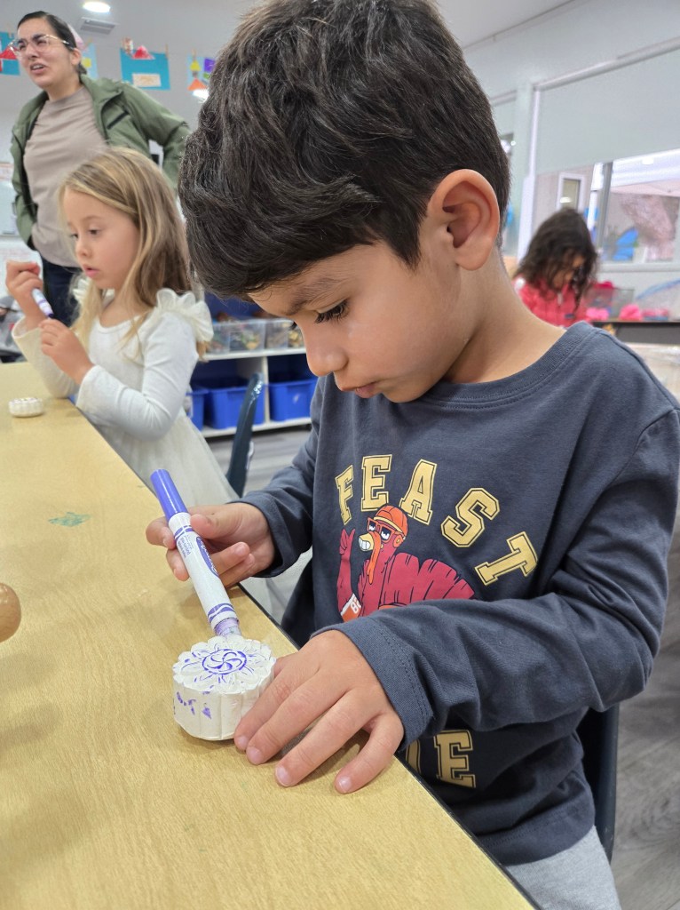 In fifth grade, two students, along with their parents, led their classmates in a beautiful Diwali celebration. Together, they explored the meaning of the five days of Diwali, the symbolism of the auspicious colors red and yellow, and the ways families honor the festival through stories, food, and traditions. Students created their own diyas—small oil lamps traditionally made of clay—and colorful rangoli designs, discovering how light, color, and creativity represent hope and goodness shining through.