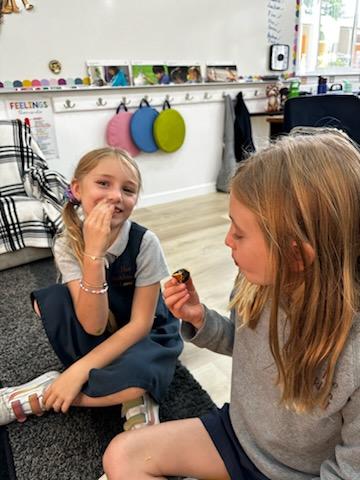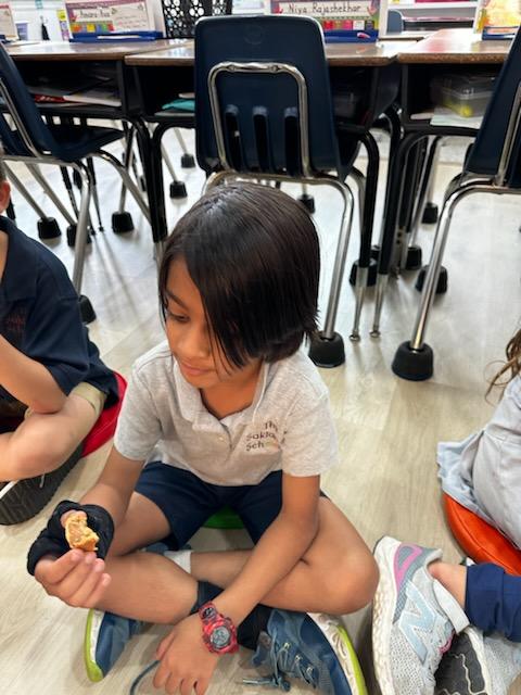 Two sixth graders also shared their family traditions, teaching classmates about Diwali’s symbolism and the use of marigold garlands and diyas. After learning and crafting, the class enjoyed traditional sweets—gulab jamun and milk cake—while connecting their discussion to the novel The Night Diary and previewing their upcoming study of ancient India and Hinduism.