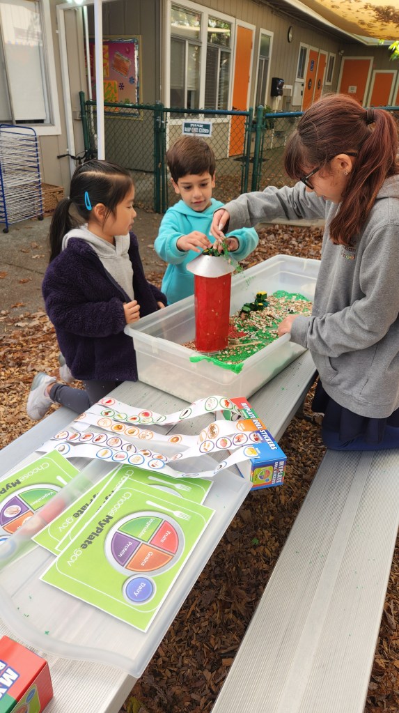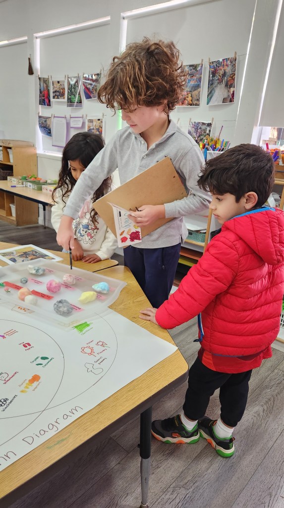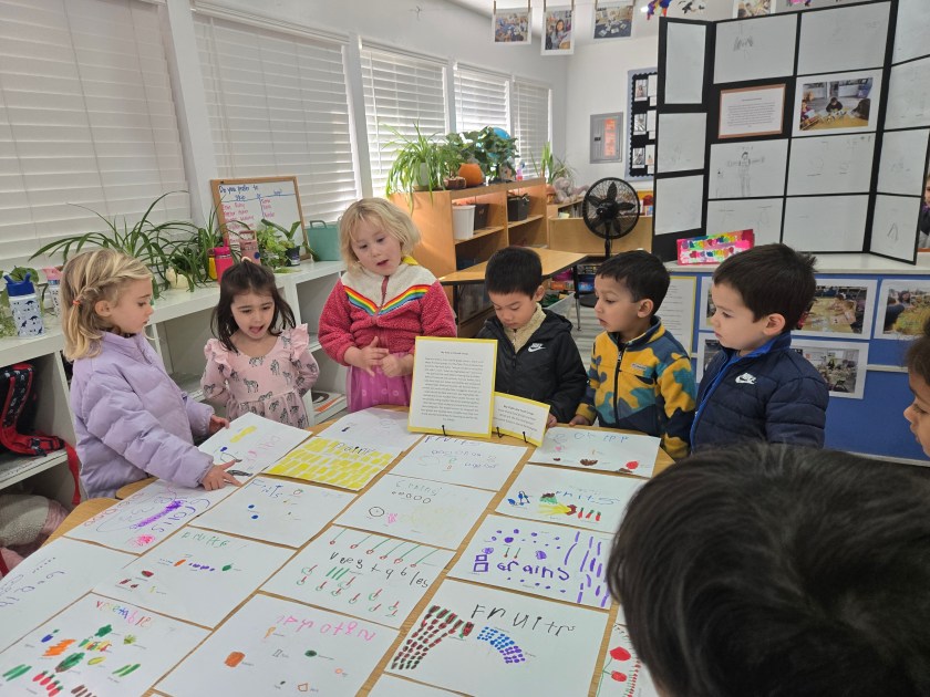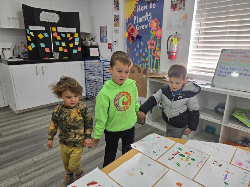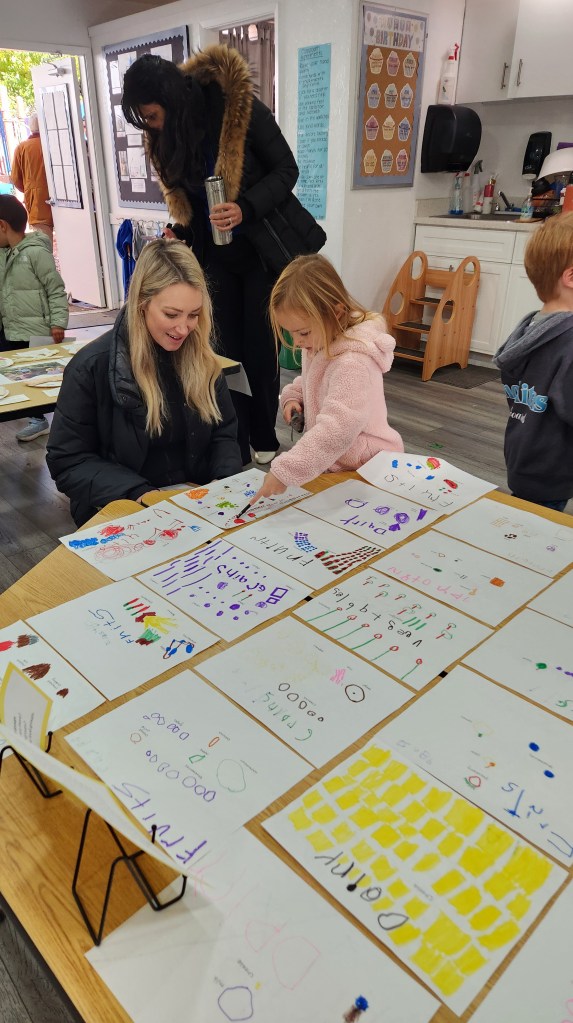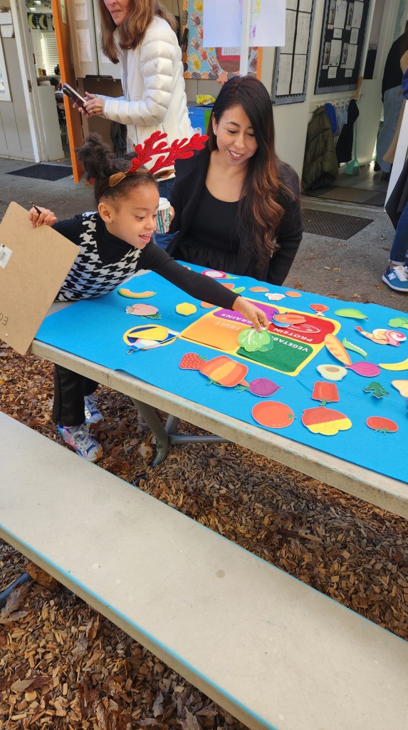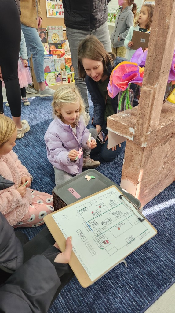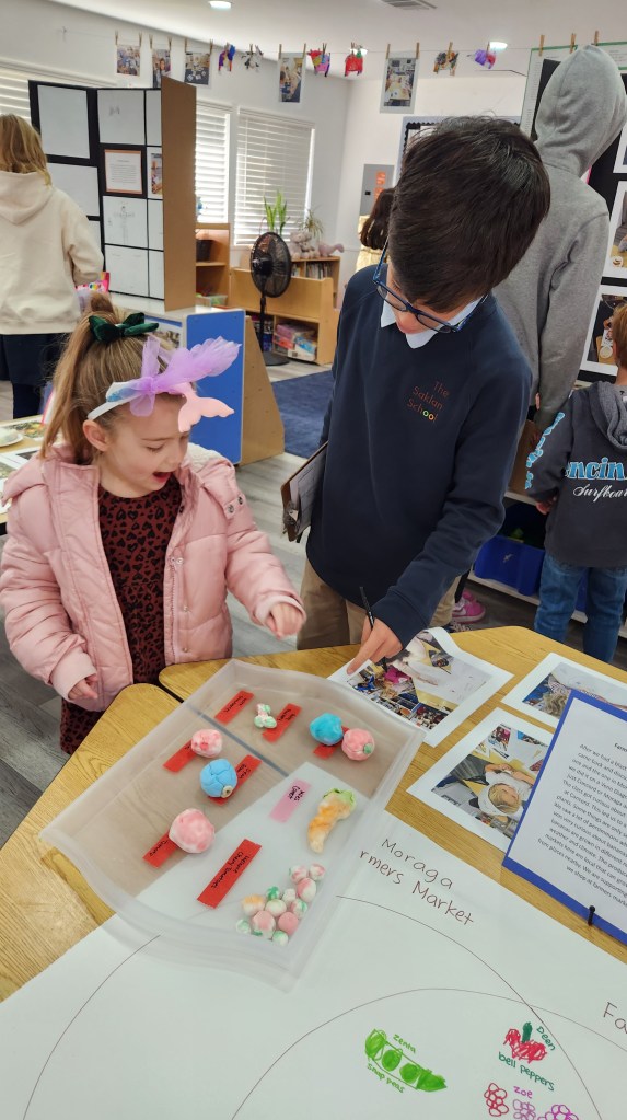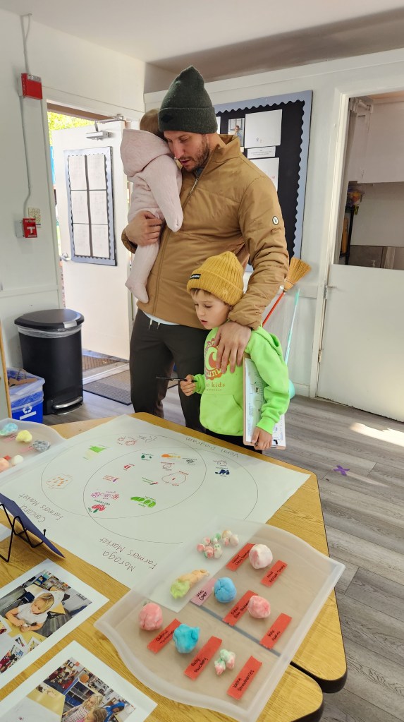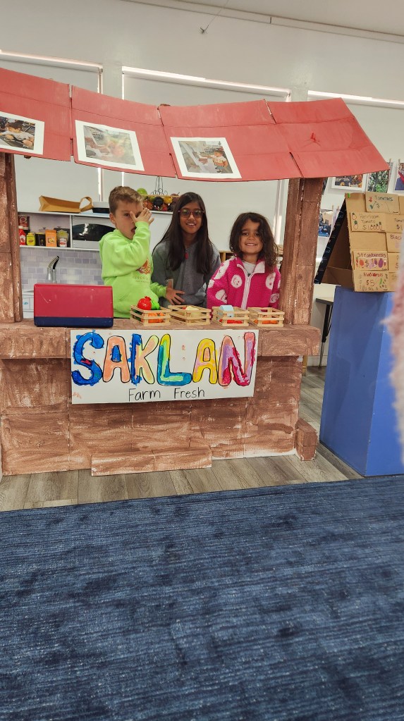 In our Early Childhood Education program, our projects culminate with a public event where students share all the expertise they have gained over the course of the project. It’s a joyful time to celebrate their hard work with family, friends, and other students and staff. It is also a rich opportunity for them to be the experts in the room and develop their speaking and listening skills. Recently our Pre-K (Hoot Owl) class culminated their project unit on farmers’ markets.