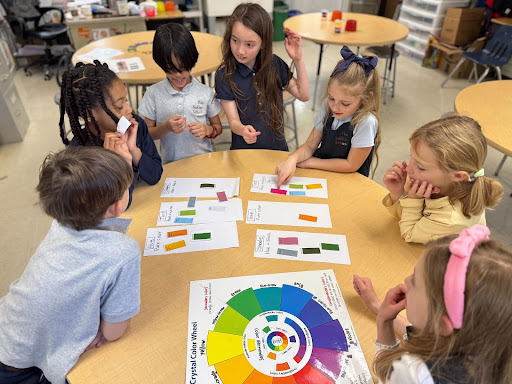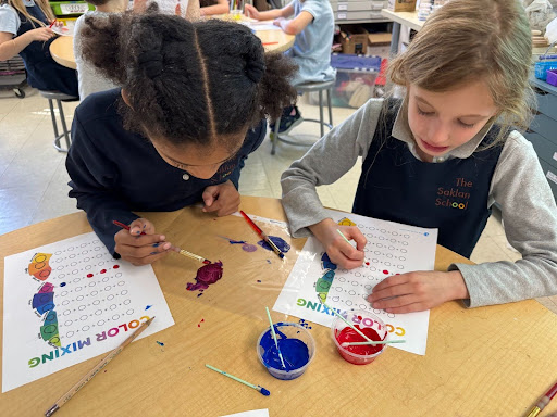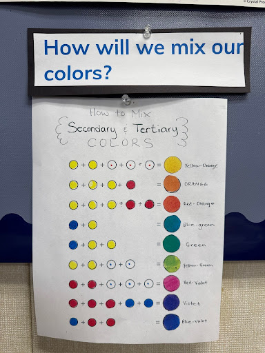 Knowing how colors impact each other when side by side and gaining an understanding of the need for balance between colors were the next key elements to successful communication through color that students began to explore. Color mixing recipes were iterated on to figure out how to mix just the right tint, shade, or hue of the desired colors.