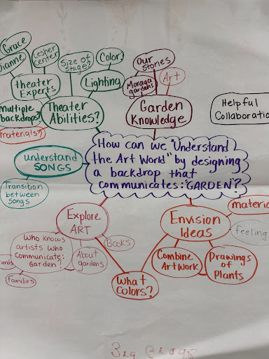 The unit began with students sharing their own experiences of gardens. This process activated their prior knowledge and began to elicit ideas, feelings, and questions connected to the concert theme. Next, they completed a whole class brainstorm of ideas, colors, experiences, feelings, and connections to the driving question. This work helped guide the decisions about which artists students would focus their learning on as they worked toward the design and creation of the concert backdrop.