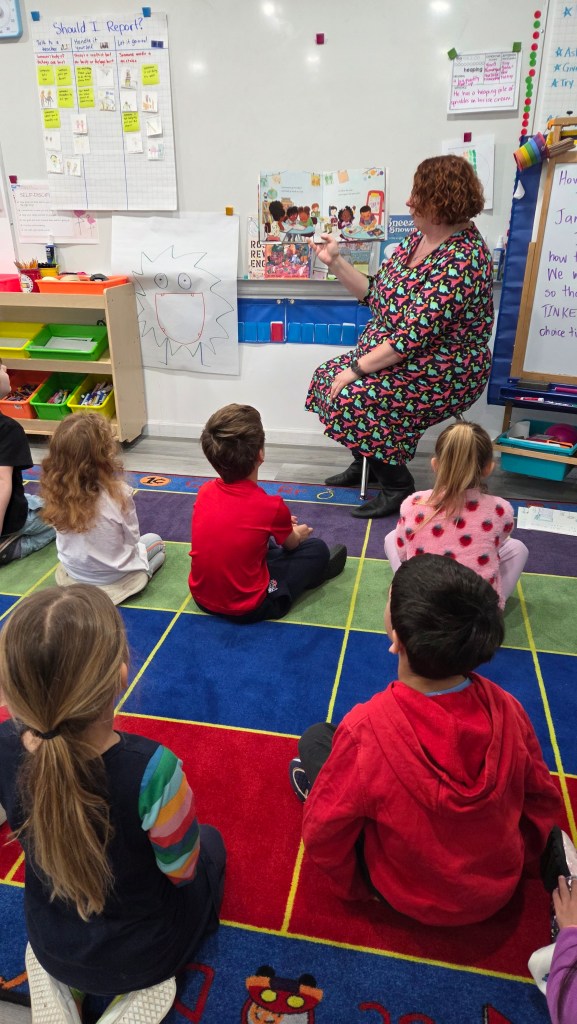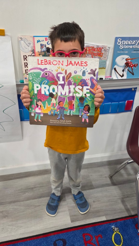 The exploration began with a read-aloud of I Promise by LeBron James, which sparked a thoughtful conversation about doing one’s best at school, in friendships, and in the wider world. Students also learned about the school LeBron James founded and how it reflects a belief in possibility, effort, and caring for others—values that are deeply aligned with the Kindergarten classroom community.