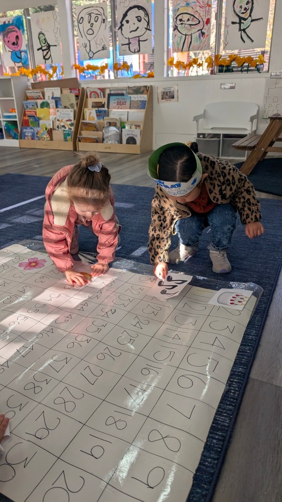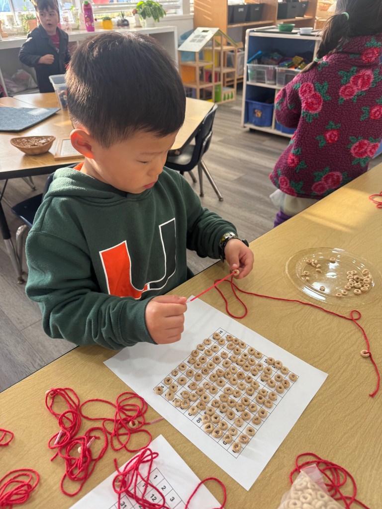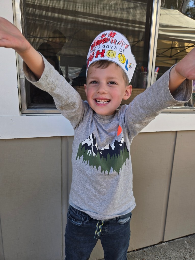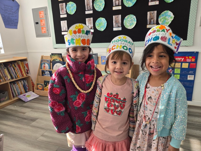 The Hoot Owls dove into hands-on activities centered around the number 100. They carefully counted out 100 Cheerios to create necklaces, participated in a 100-star scavenger hunt, and explored different ways to represent 100 using classroom materials. The celebration culminated in a special lunch party complete with photos and festive crowns.